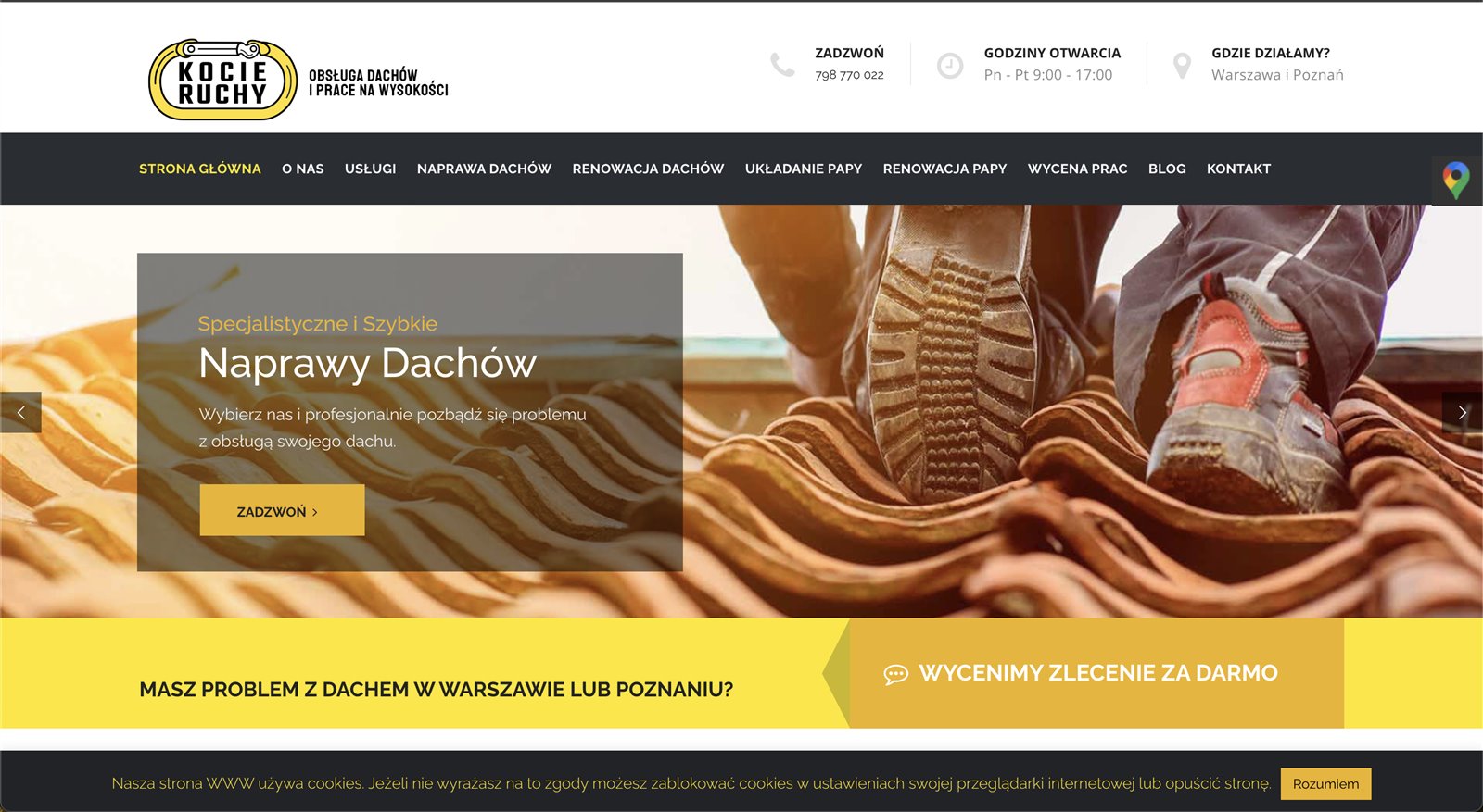 • kompletny zestaw narzędzi budowlanych niezbędnych do prowadzenia prac dachowych.