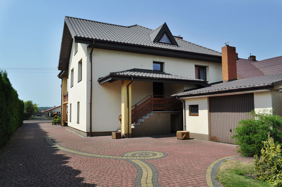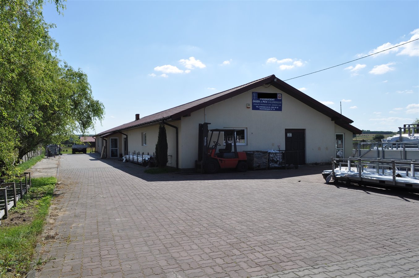 Budynki ogrodzone, na całej powierzchni działki podjazd utwardzony kostką brukową.
