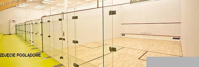 korty do squasha, wyposażenie szatni (prysznice), lobby recepcja,