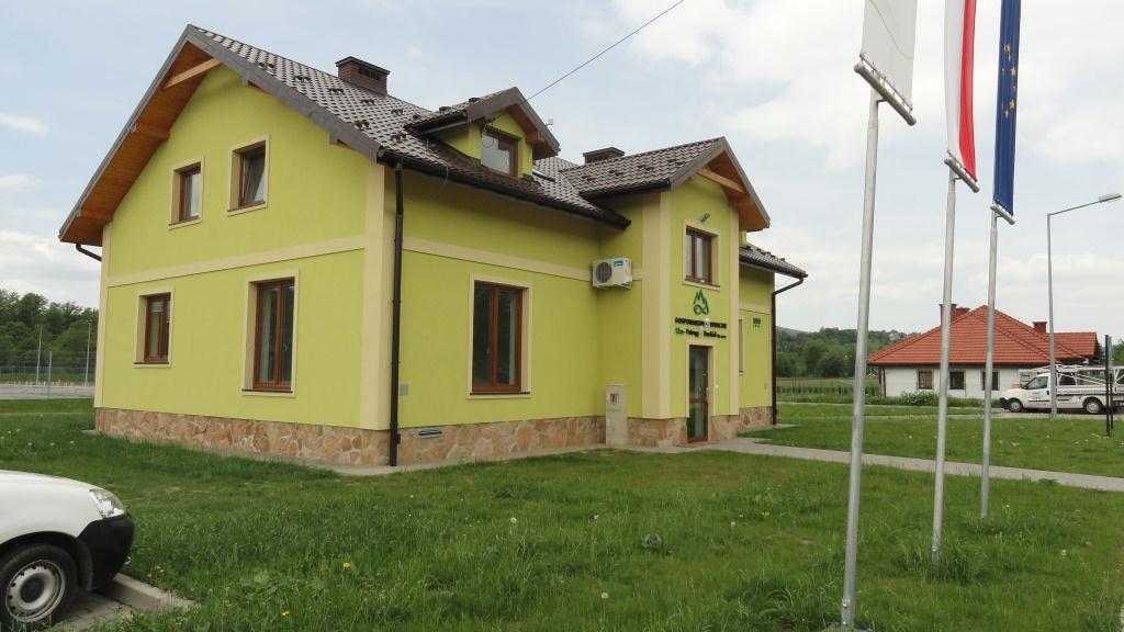Budynek gospodarczy z pomieszczeniem na odpady stałe wyposażony jest w chłodnie o powierzchni 32 m2.