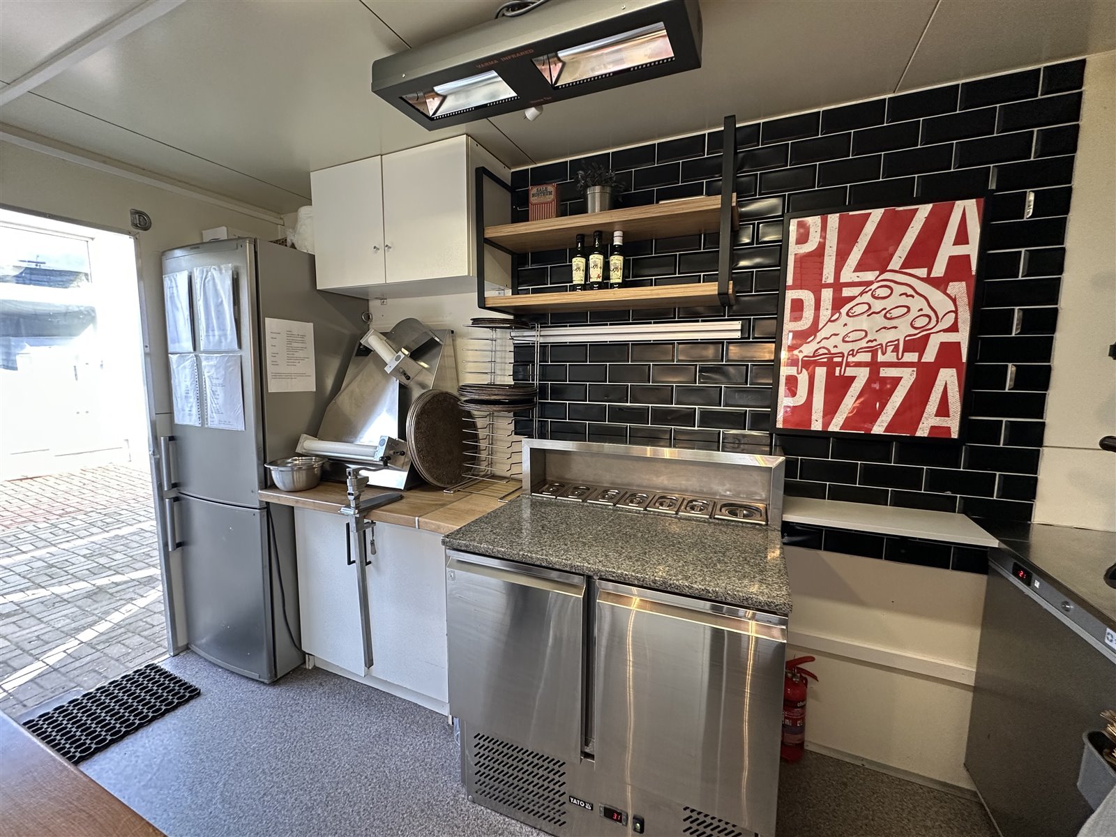 Przyczepa posiada odbiór sanepidu oraz jest w pełni wyposażona i przystosowana do produkcji pizzy, makaronów, zapiekanek, kiełbasek z pieca oraz napojów zimnych i gorących. W skład wyposażenia wchodzą: meble kuchenne w zabudowie, zlewozmywak 3-komorowy, system wentylacji z profesjonalnym wyciągiem, szafa mroźnicza, chłodziarko - zamrażarka, chłodziarka oraz wszystkie narzędzia potrzebne do produkcji pizzy itp. Do tej pory przyczepa funkcjonowała jako pizzeria.