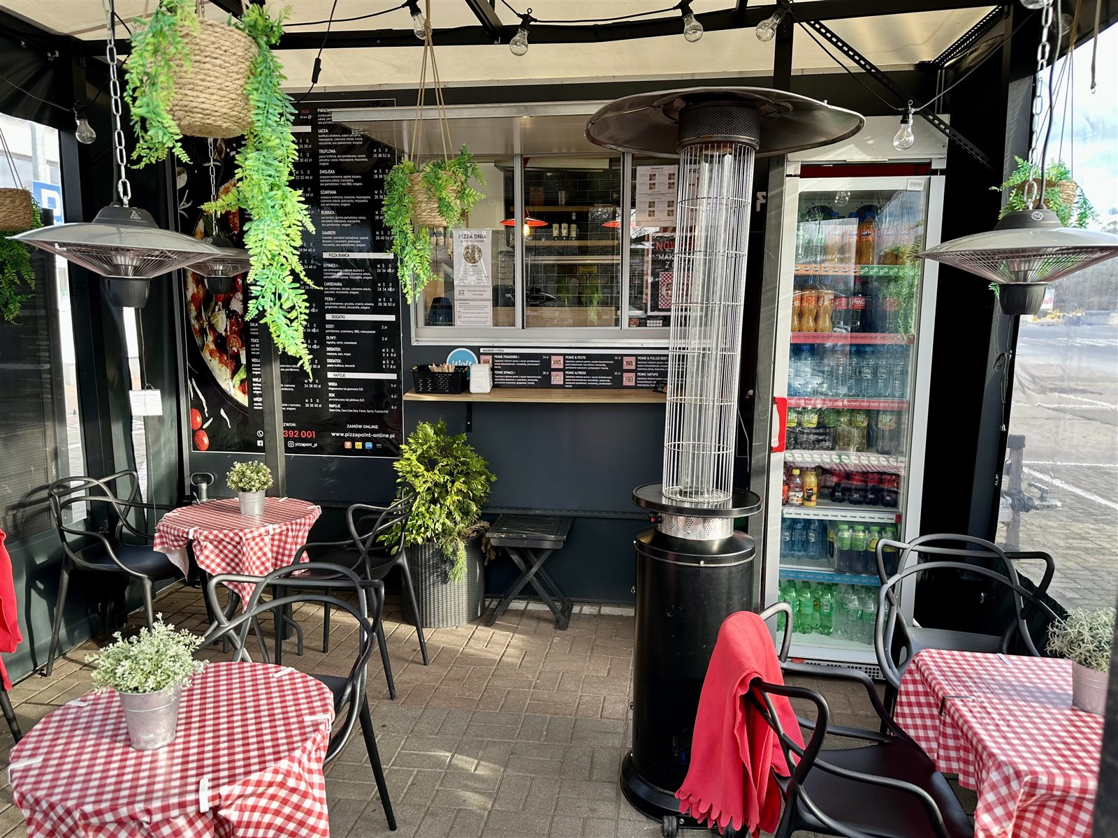 (cena nie obejmuje pieca do pizzy, stołu chłodniczego do pizzy oraz wałkownicy do ciasta). Sprzęty płatne dodatkowo 10000 zł za cały komplet lub pojedynczo (cena do uzgodnienia). Istnieje również możliwość zakupu ogródka z całym wyposażeniem (4 stoliki, 9 krzeseł, 4 wiszące lampy grzewcze, oświetlenie, rośliny dekoracyjne, oprócz parasola grzewczego i lodówki Coca-Coli) o wym. 4 m/ 3m. w cenie 9000 zł.
