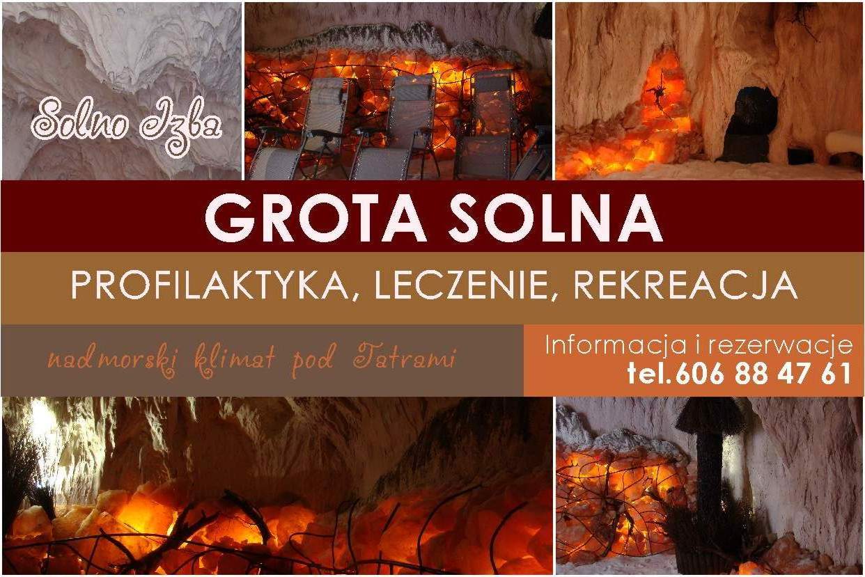 Grota solna to pomieszczenie ok 20m2, podłogę wysypaną ma solą z Kłodawy, natomiast sciany wyłożone różową solą z Pakistanu. Grota jest w pełni wyposażona we wszystkie urzadzenia takie jak tężnie, klamtyzację, wentylator, potrzebne do prawidłowego jej funkcjonowania.