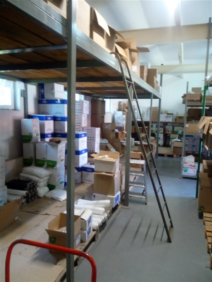 • pełne wyposażenie części socjalno-biurowej oraz magazynowej (regały, wysokie składowanie oraz wózek paletowy),