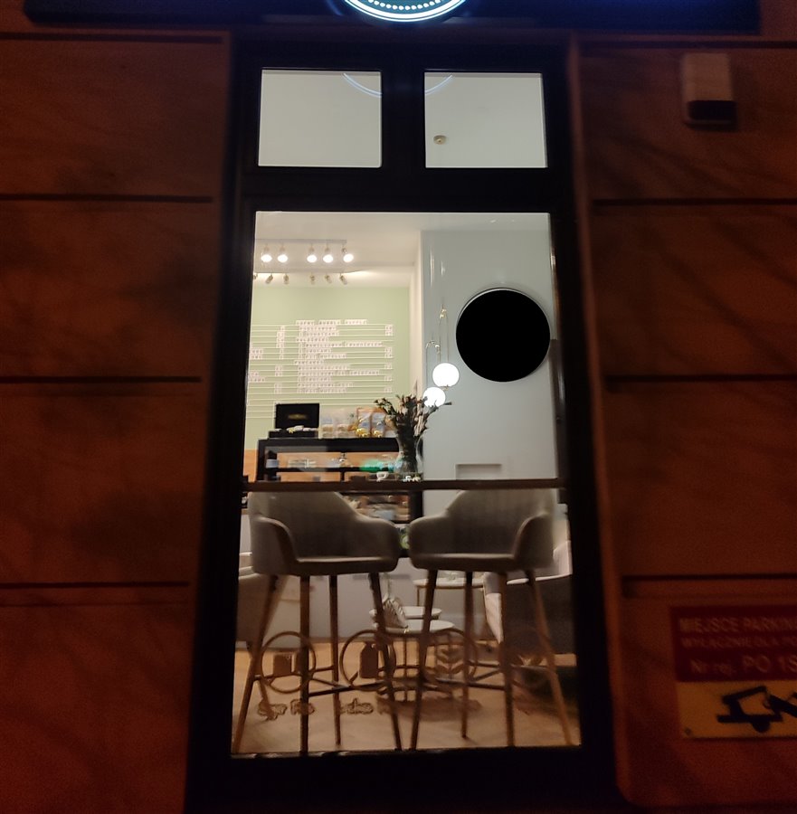 • posiada atrakcyjne oznaczenie wizualne: duży kaseton świetlny, winder o wysokości 3,5 m, wystawione stoliki i krzesła, potykacz, , oklejona witryna i drzwi wejściowe do kamienicy (drzwi zarezerwowane dla kawiarni/cukierni)