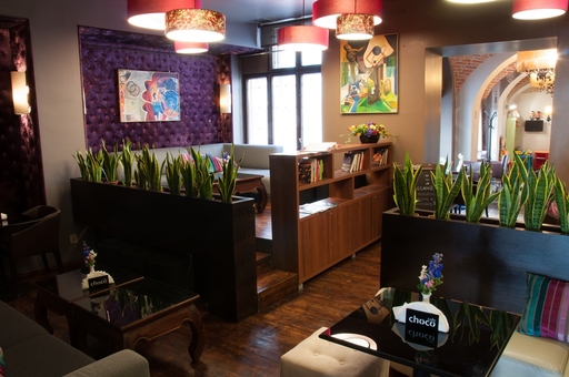 Kawiarnia i czekoladziarnia w jednym. Cztery sale dla gości, każda inna, ale wszystkie w ciepłym brązowo-czekoladowym kolorze zachęcają, by zasiąść w fotelu i rozkoszować się kojącą muzyką.