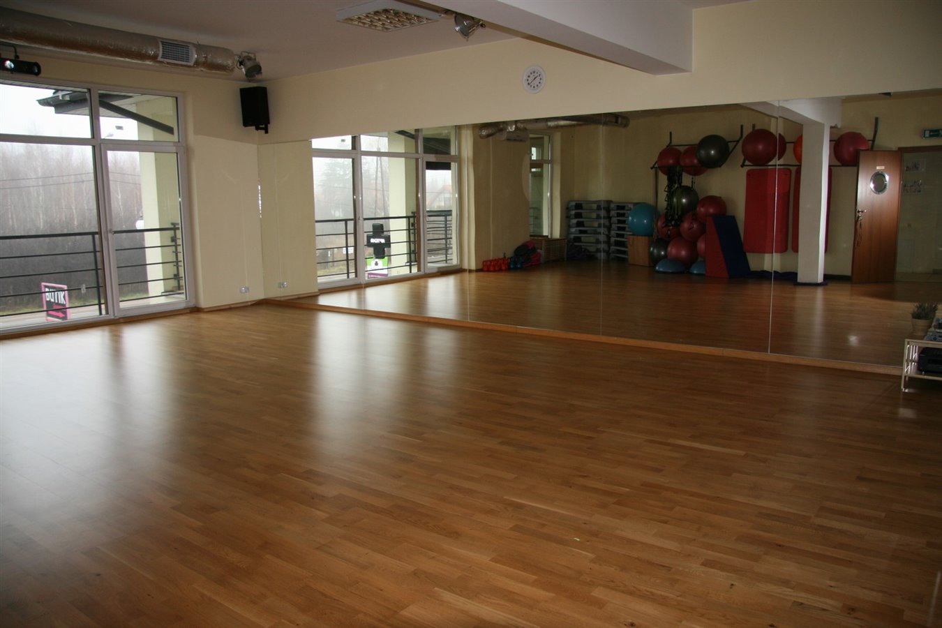 1 salę fitness – posiada specjalistyczną sportową podłogę drewnianą tłumiącą drgania firmy BARLINEK, wydajną wentylację, klimatyzację, wysokiej jakości sprzęt grający Gemini, oświetlenie kolorowe zsynchronizowane z muzyką, sprzęt marki Reebok i Tiguar – maty, stepy, ringi, piłki duże, piłki easy i heavy ball, kettlebells, dyski, ciężarki do rąk i na nogi, ekspandery, gumy, na całej ścianie lustra. Istnieje możliwość powiększenia klubu o drugą salę np. na treningi personalne, zajęcia funkcjonalne, odnowę biologiczną bądź siłownię.
