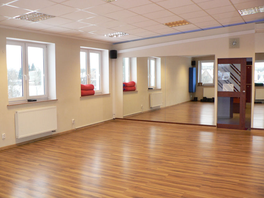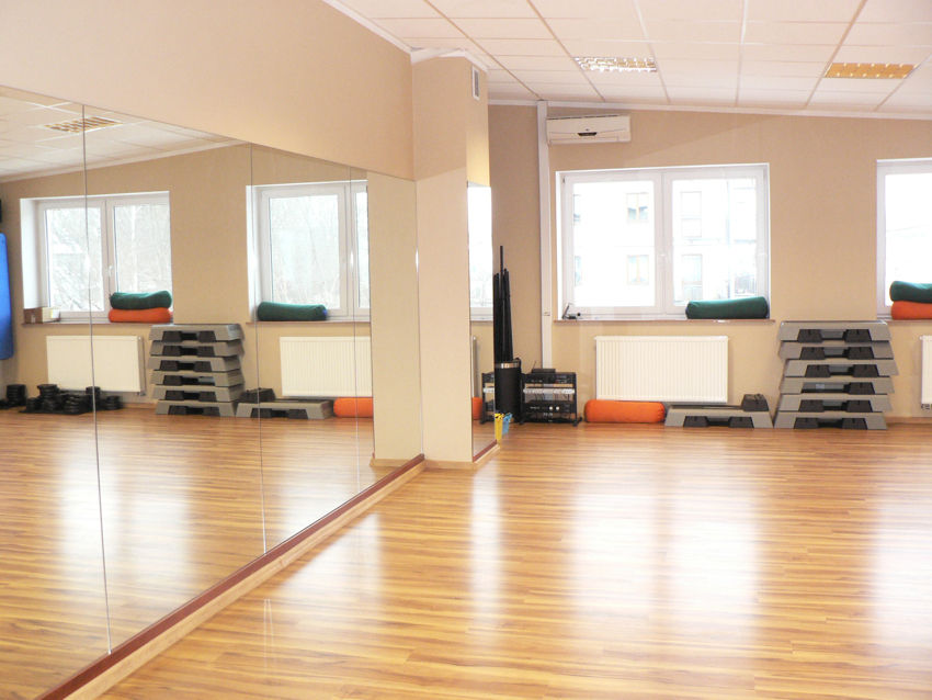 Pełne wyposażenie: STEPY, Ciężarki, sztangi, maty, sprzęd AUDIO, klimatyzatory, recepcja kompletnie wyposażona, szatnie kompletnie wyposażone w szafki ławki itp.