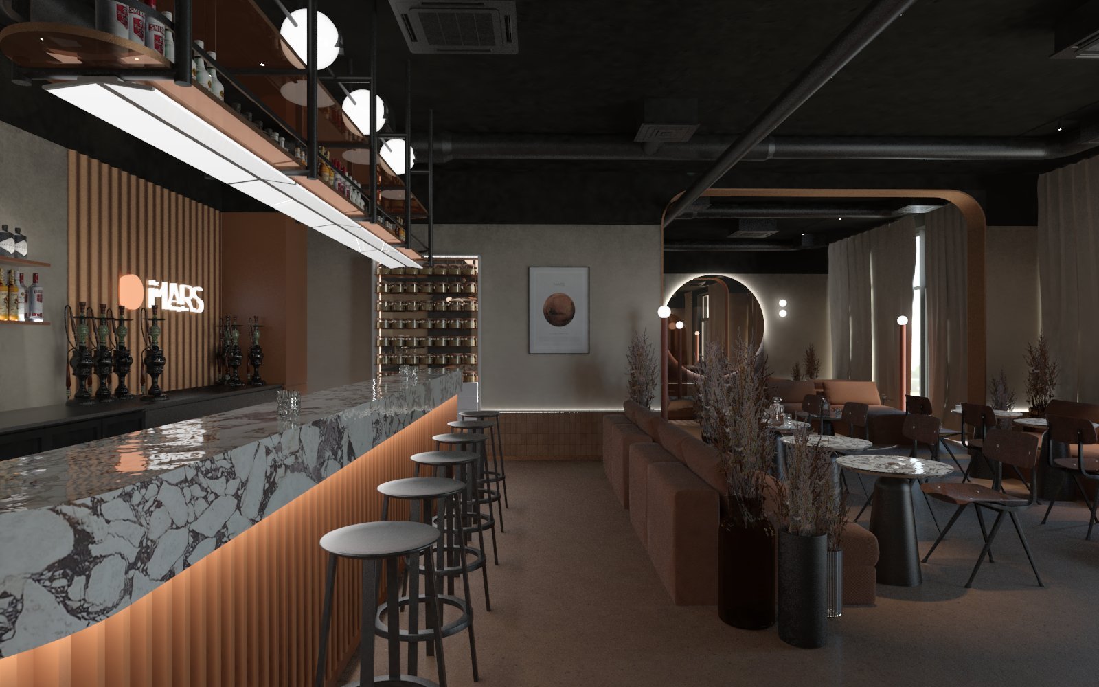 • strefę shishy z wygodnymi sofami i stolikami,