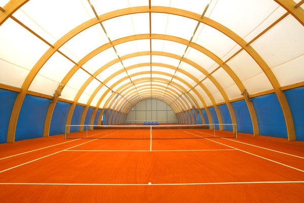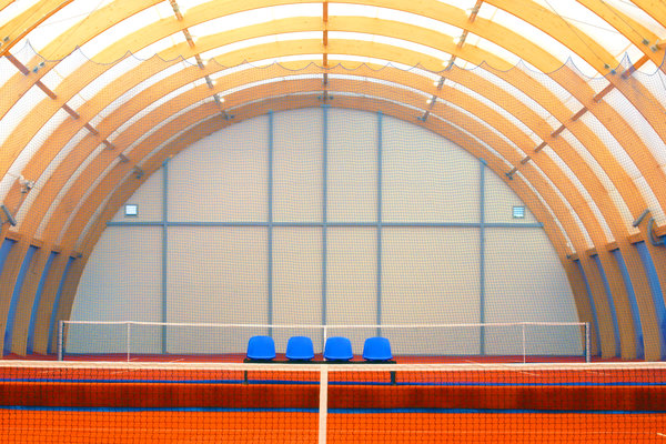 - Hale tenisowe o nowoczesnej konstrukcji łukowej drewnianej, z drewna klejonego