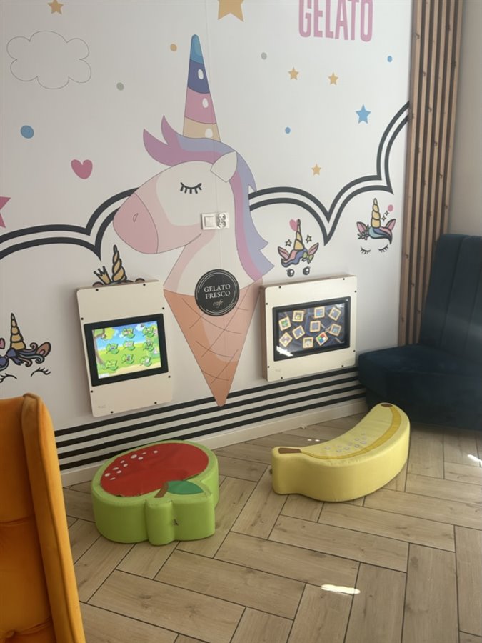 Pełne wyposażenie: konserwator do lodów, maszyna do lodów włoskich, eleganckie witryny chłodnicze, popping bar, kolbowy ekspres do kawy, emulsyfikator do lodów novagel, mikser do shaków, zmywarko-wyparzarka, interaktywny kącik dla dzieci, wygodne i eleganckie fotele dla gości, alarm, kamery oraz inny drobny sprzęt.
