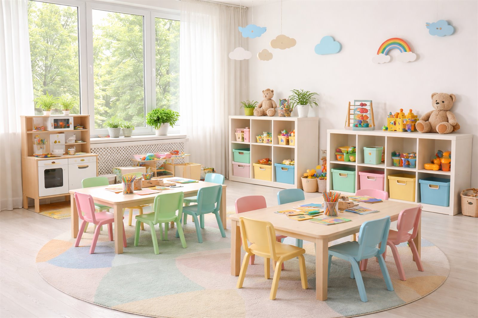 Placówka jest sprzedawana z pełnym wyposażeniem – meblami, zabawkami, materiałami edukacyjnymi, pomocami dydaktycznymi i dekoracjami, dzięki czemu może działać bez żadnych dodatkowych inwestycji.