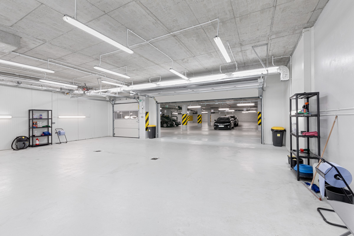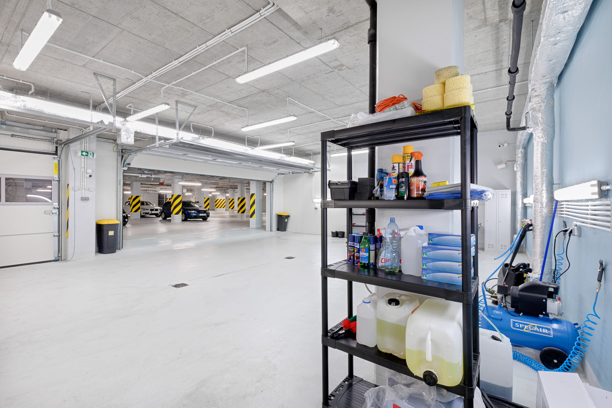 Znajduje się w garażu podziemnym biurowca.