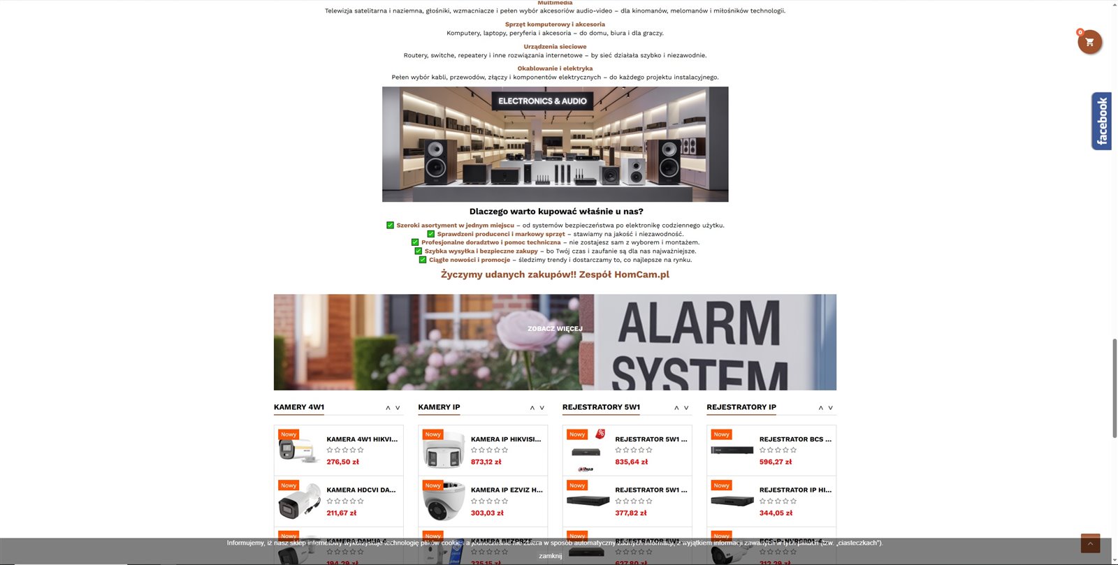Gotowy sklep internetowy HomCam.pl – monitoring, alarmy i automatyką domowa 12 000 produktów w systemie dropshipping z pełnym wsparciem i wdrożeniem.