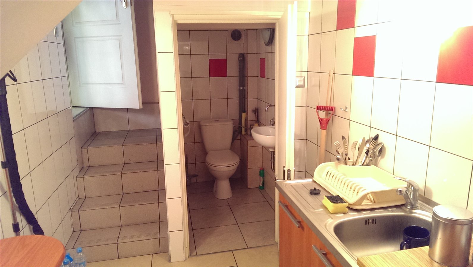 Nieruchomość (46 m2) jest wyposażona w magazyn na poddaszu, kuchnie z lodówka i zlewozmywakiem, oraz łazienkę.