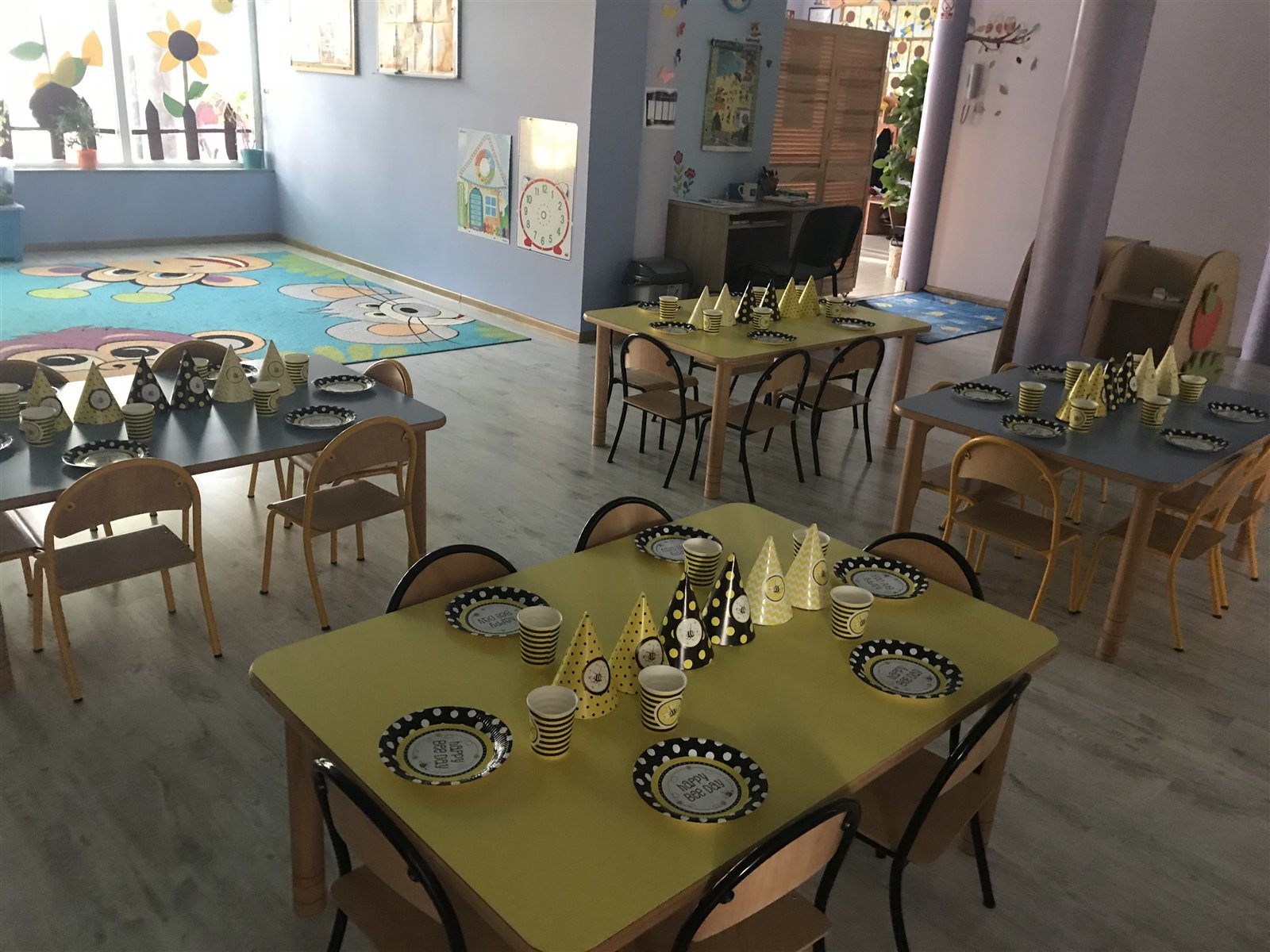 • Kameralna lokalizacja – przedszkole mieści się w wynajmowanym budynku wielorodzinnym, na parterze.