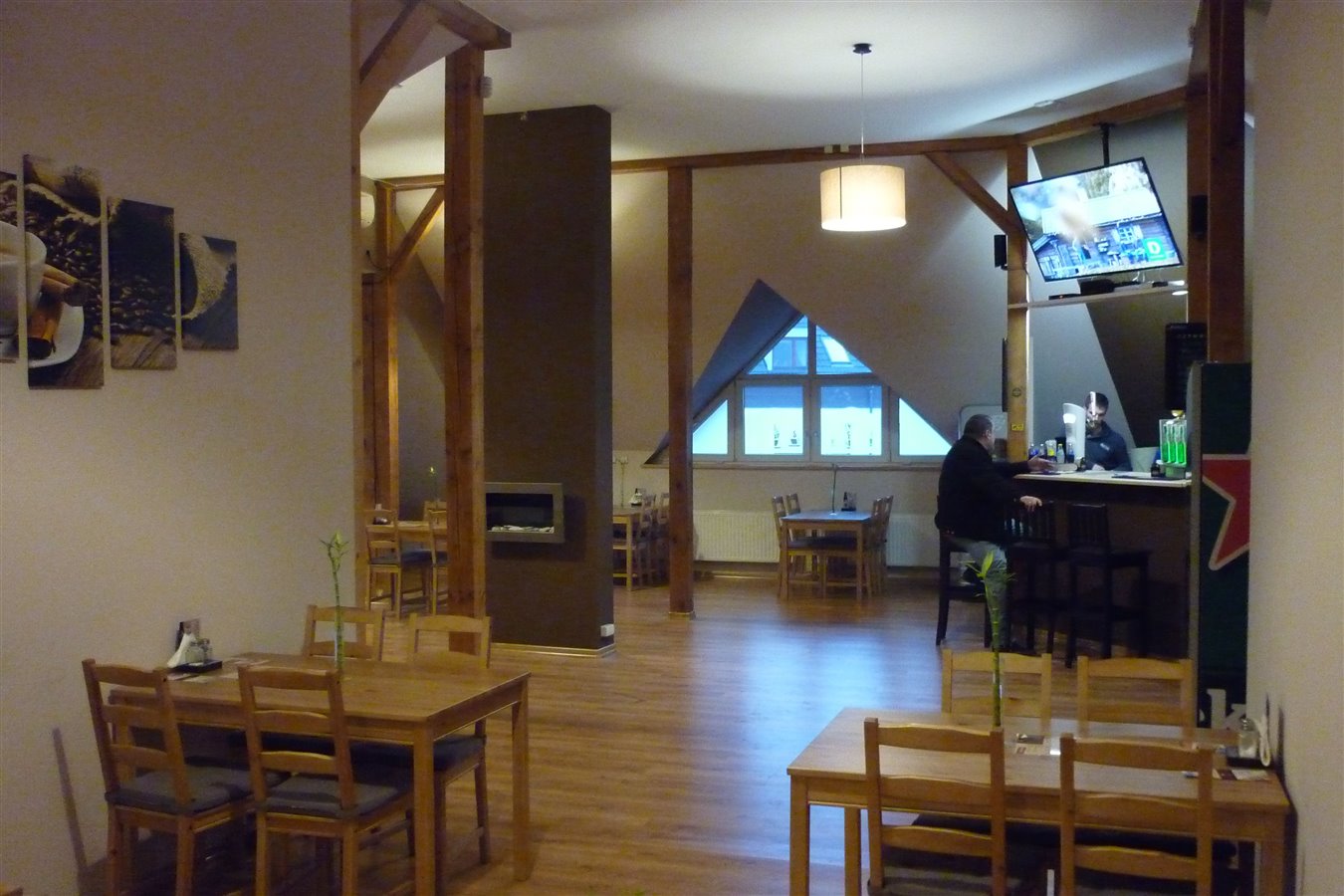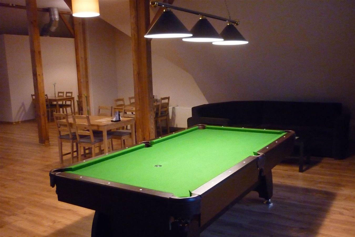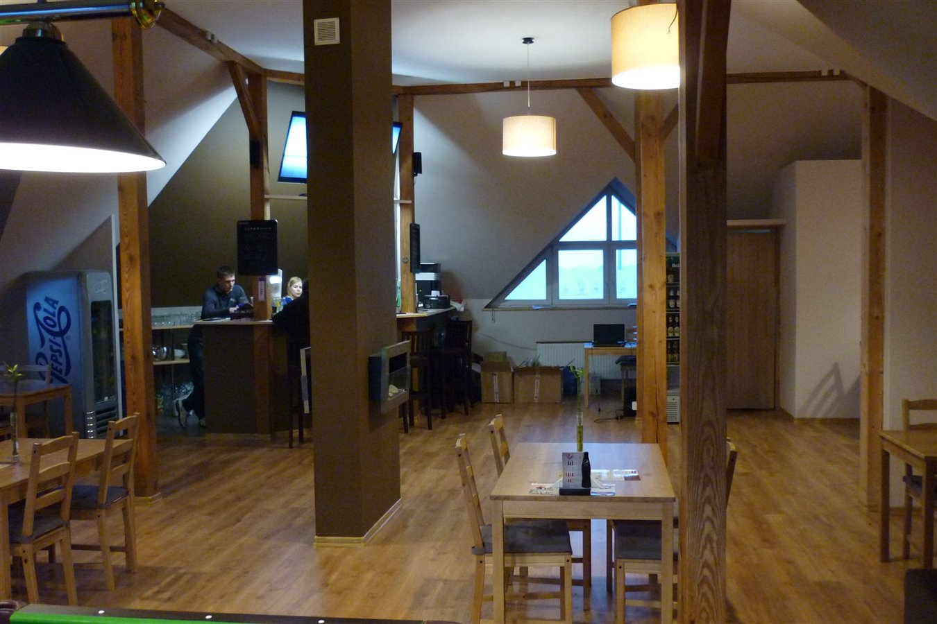 Lokal jest wyremontowany (styczeń 2015), cały sprzęt na kuchni oraz sali ma 8 miesięcy, praktycznie nowy. Nasza sala ma około 120m2 co pozwala na organizację imprez okolicznościowych (urodziny, komunie, stypy, duże wydarzenia sportowe i inne).