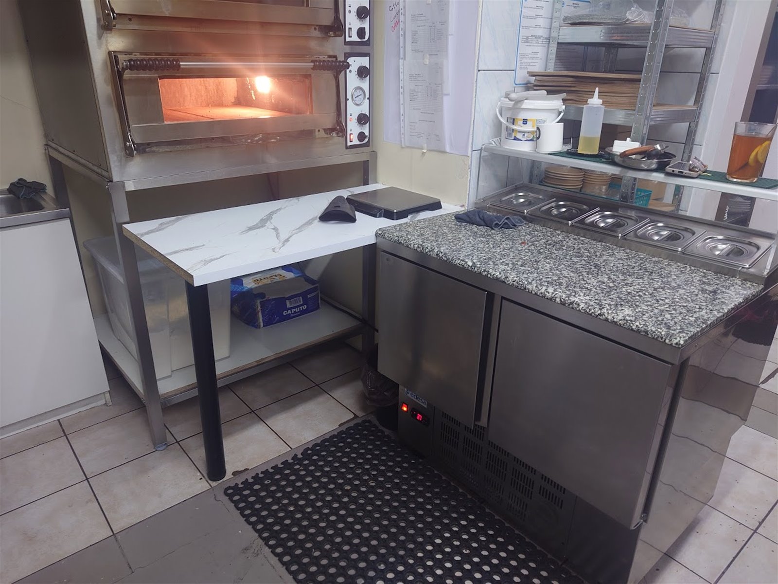 5 lodówek (w tym zamrażarka i stół chłodniczy do pizzy)