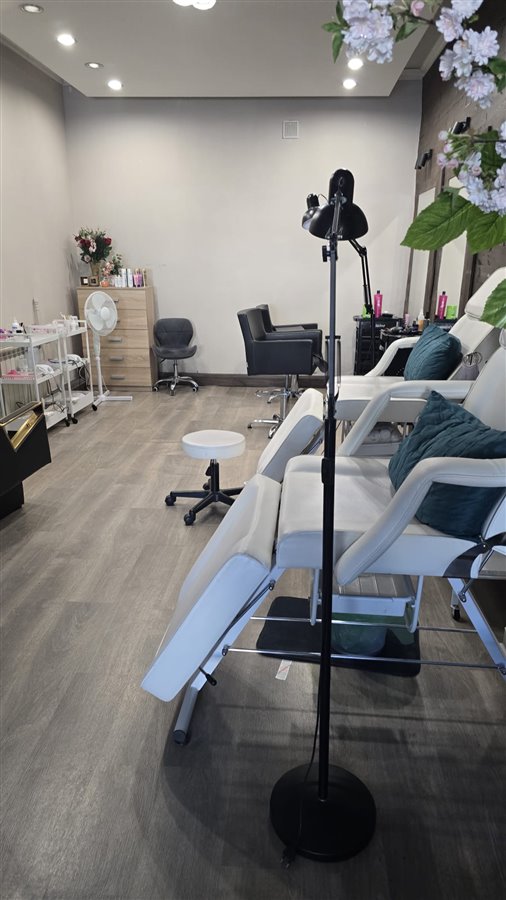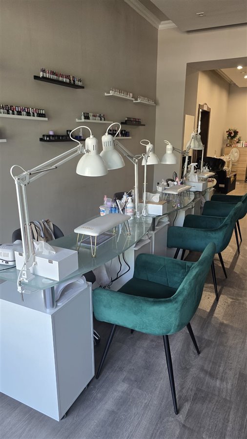 - Pomieszczenie w pełni wyposażone pod manicure oraz pedicure (4 stanowiska do manicure oraz 3 stanowiska do pedicure, regaly, wszystkie wyposażenie do paznokci)