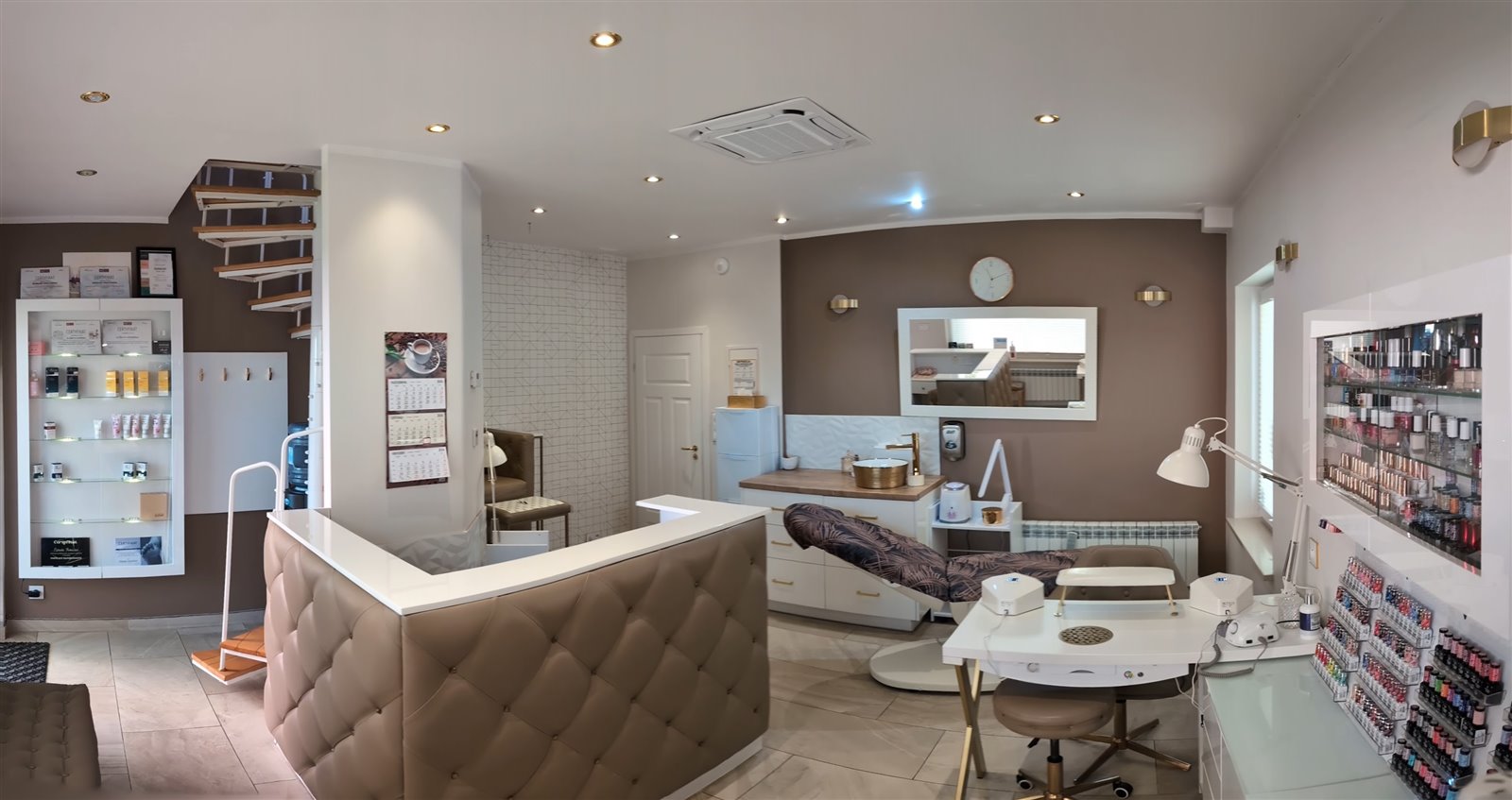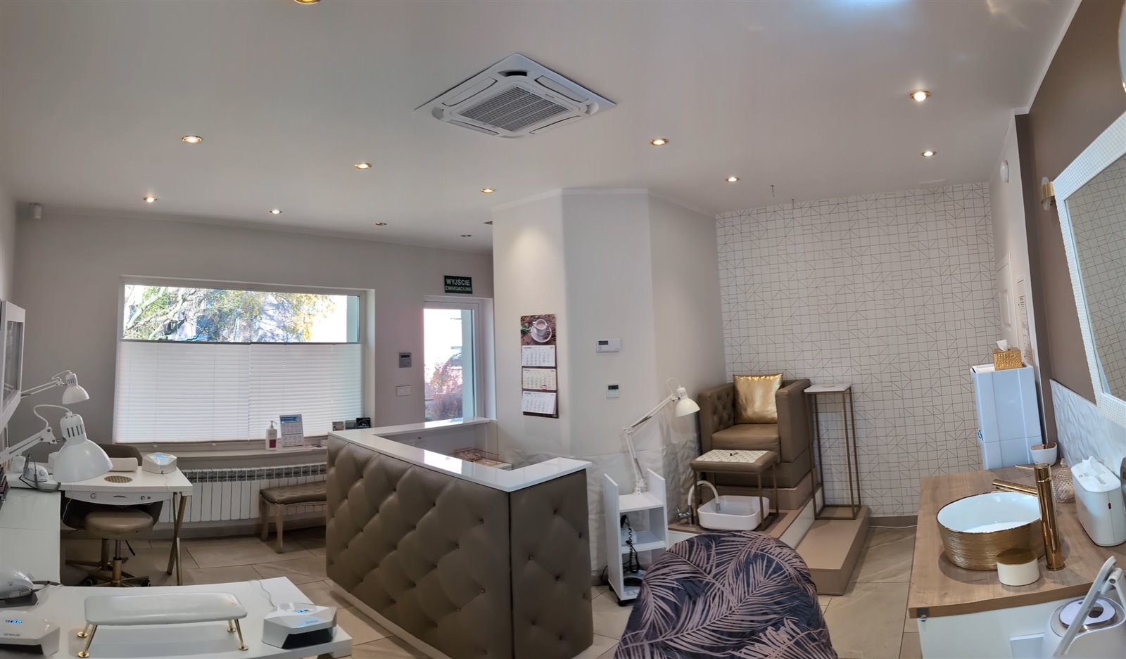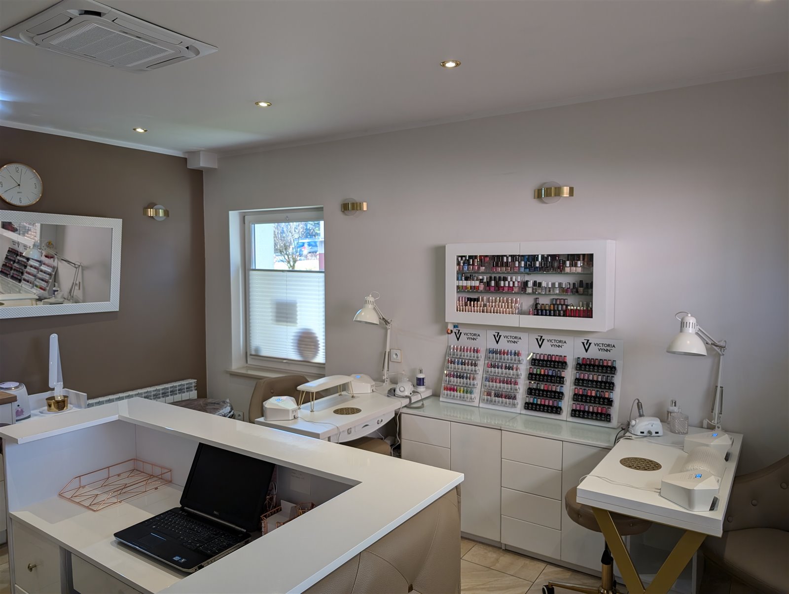 Wszystkie niezbędne serwisy wykonywane są na bieżąco. W maju zostały zakupione nowe lampy led do stylizacji żelowych oraz poprawione stanowiska do pedicure - dla lepszego komfortu pracy. W listopadzie wymieniona tapicerka na fotelach. W zeszłym roku został pomalowany dach. W lokalu znajdują się 3 stanowiska do manicure, 2 stanowiska do pedicure, 3 łóżka zabiegowe, sprzęt do zabiegów pielęgnacji - biała kosmetyka.
