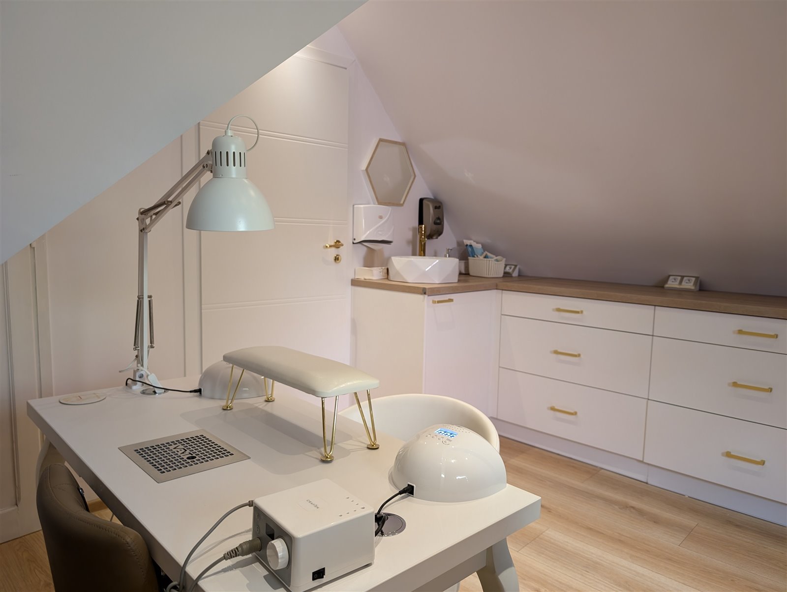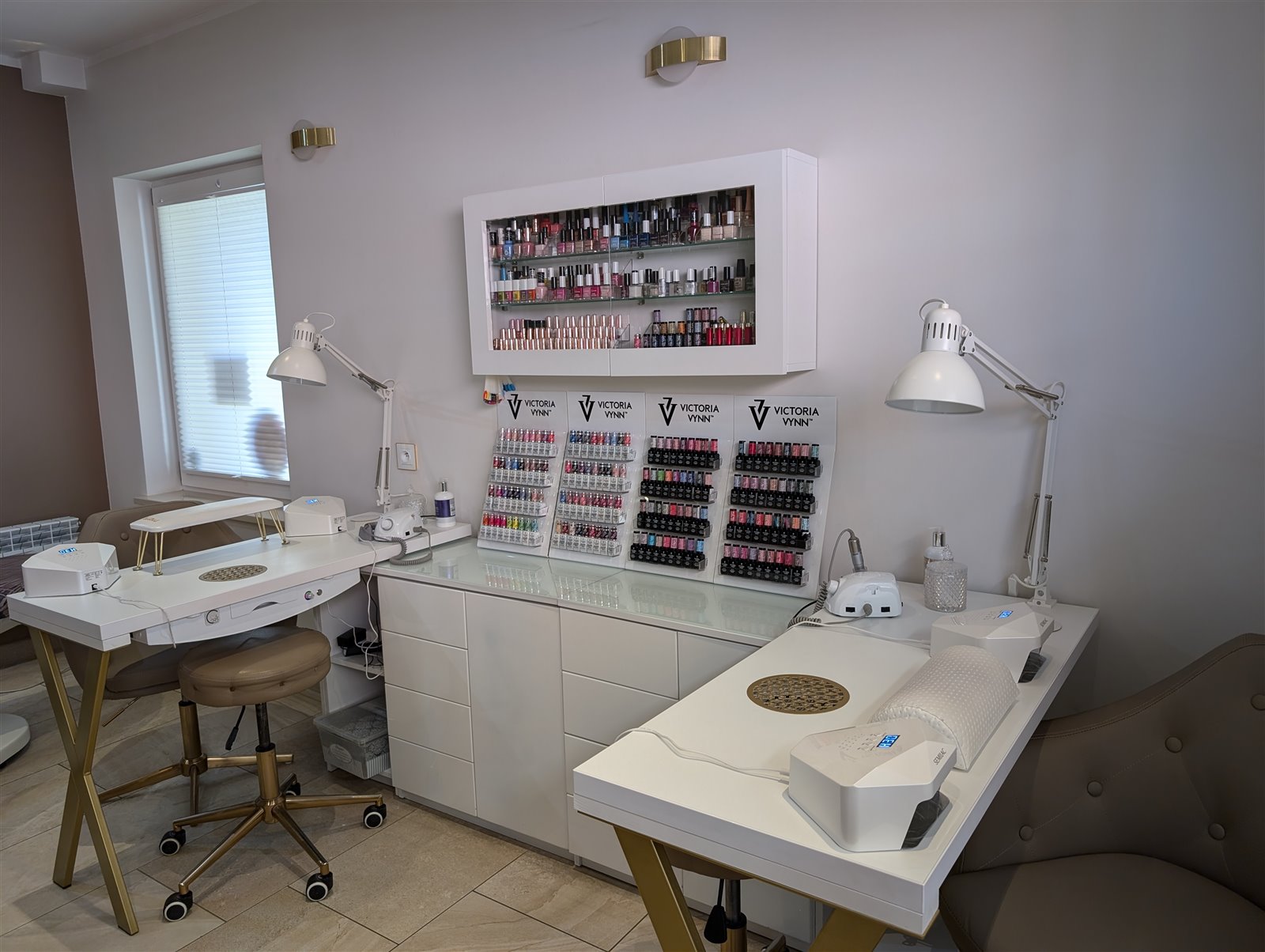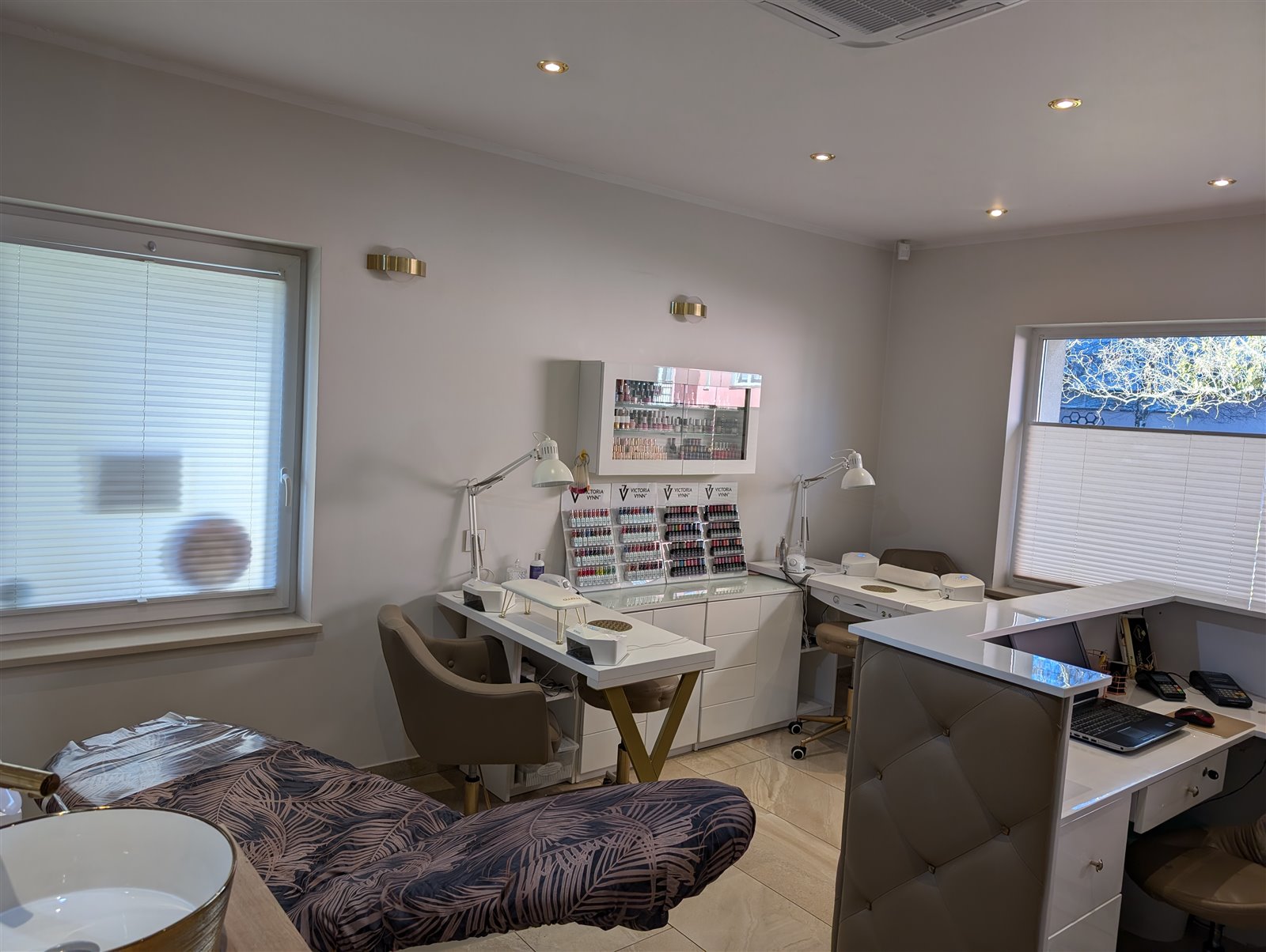 Wszystkie niezbędne serwisy wykonywane są na bieżąco. W maju zostały zakupione nowe lampy led do stylizacji żelowych oraz poprawione stanowiska do pedicure - dla lepszego komfortu pracy. W listopadzie wymieniona tapicerka na fotelach. W zeszłym roku został pomalowany dach. W lokalu znajdują się 3 stanowiska do manicure, 2 stanowiska do pedicure, 3 łóżka zabiegowe, sprzęt do zabiegów pielęgnacji - biała kosmetyka.