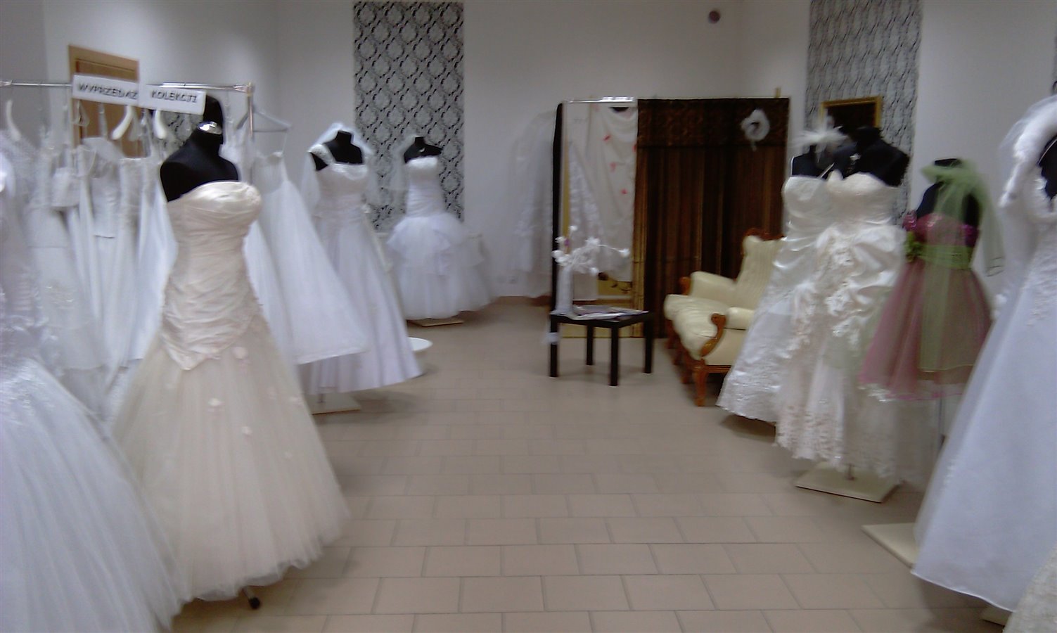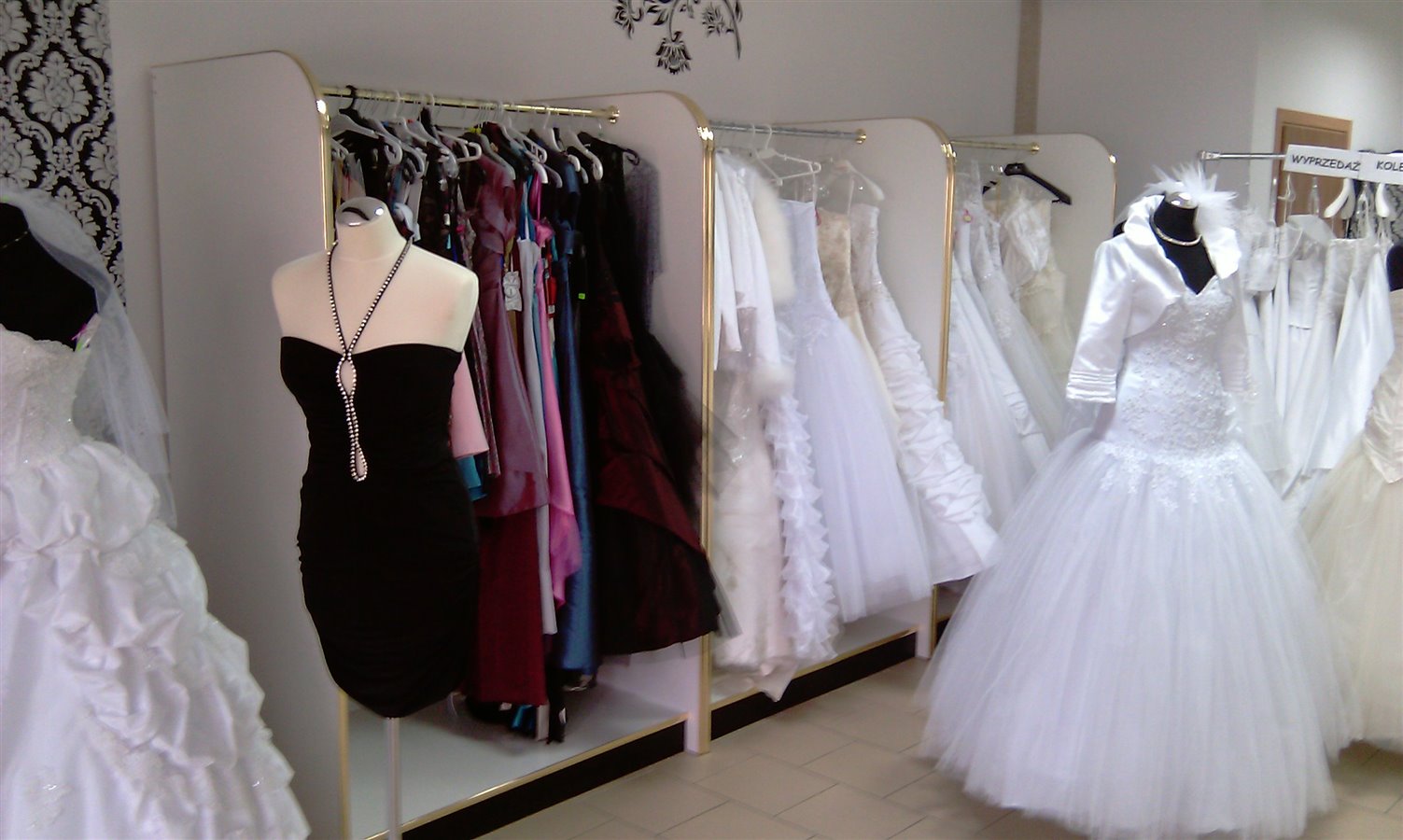 suknie ślubne 30szt, meble, lustra, manekiny. Więcej informacji pod numerem telefonu.