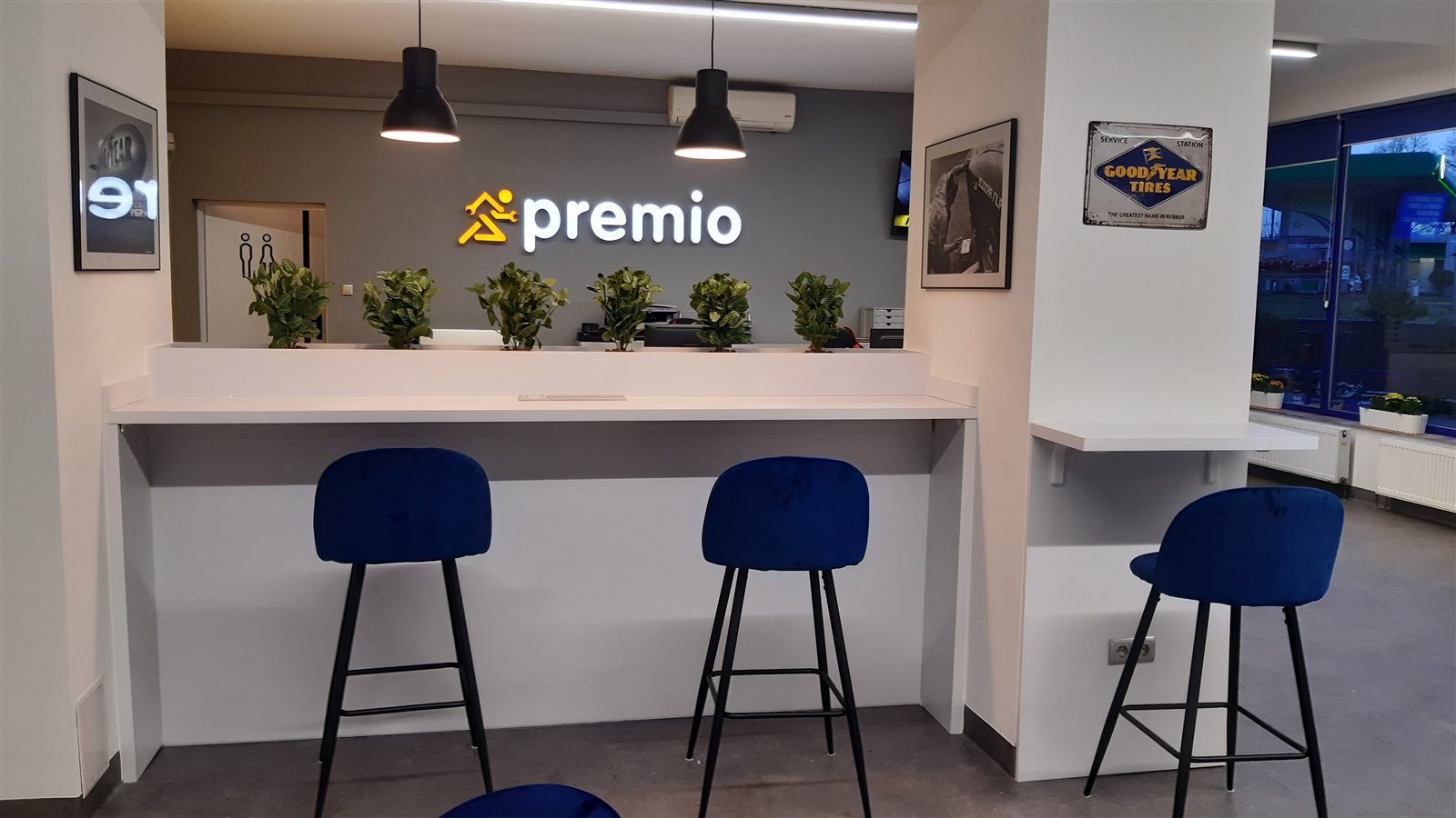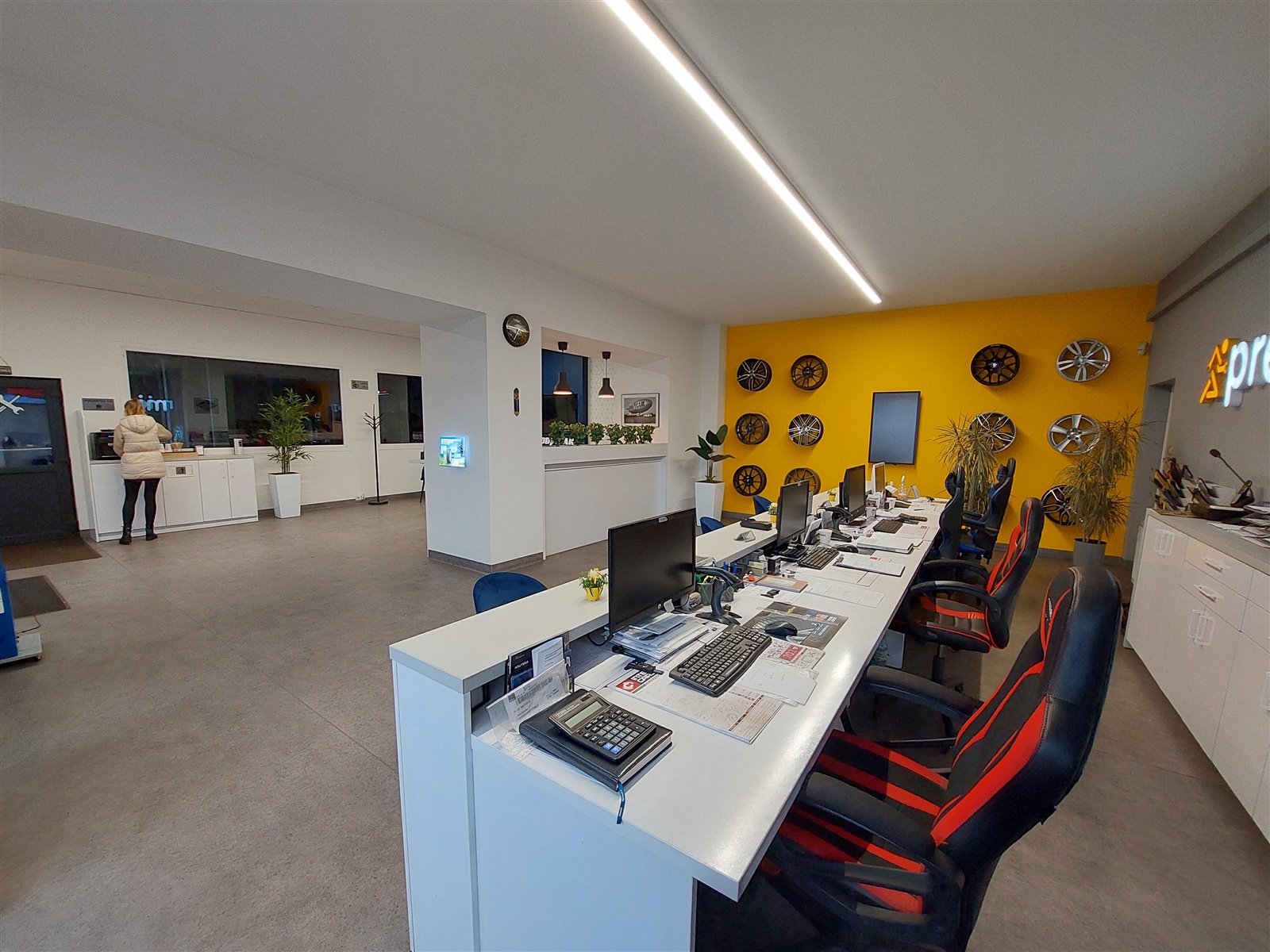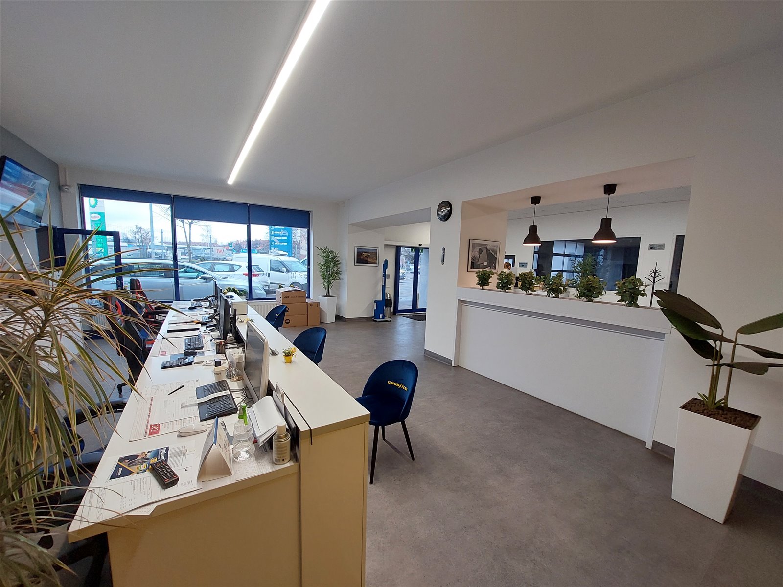 - 7 wyposażonych stanowisk (podnośniki nożycowe, kolumnowe ,1x kanał dla sam dostawczych)