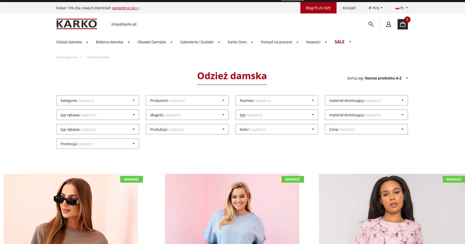 • Silna pozycja SEO – wysokie miejsca w Google na kluczowe frazy, m.in. "odzież damska", "sukienki plus size" i wiele innych.