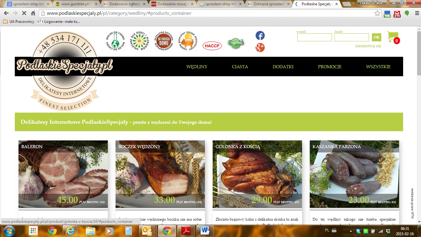 Sprzedam sklep internetowy zajmujący się sprzedaża ekologicznych wędlin. Sklep jest pozycjonowany w google.pl