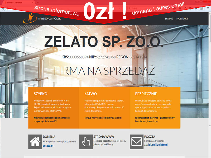 TYTUŁ: Sprzedam spółkę z o. o. Teraz tylko 1890zł a strona i domena internetowa 0zł, WARSZAWA, CAŁA POLSKA