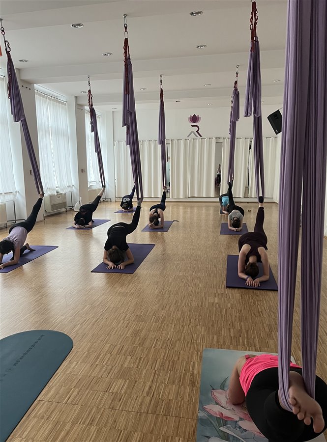 Szkoła posiada wynajmowany lokal o powierzchni 250 m2 w tym - sala do jogi (120 m2), recepcja, szatnia z prysznicami, pomieszczenie magazynowe, gabinet masażu z prysznicem, przestronny hol z wygodnymi kanapami.