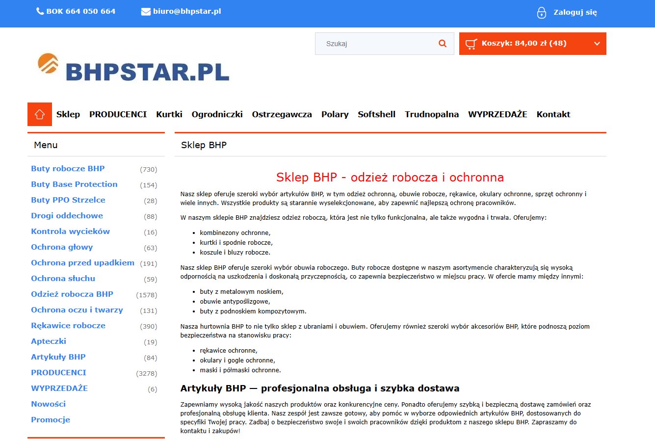 Spólka prowadzi od 5 lat sklep internetowy BHPSTAR.PL z artykułami BHP.
