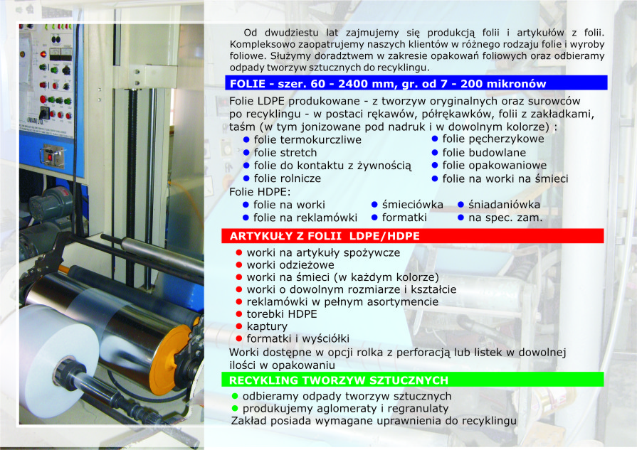Sprzedam zakład produkcji folii, art z folii i recyklingu tworzyw sztucznych