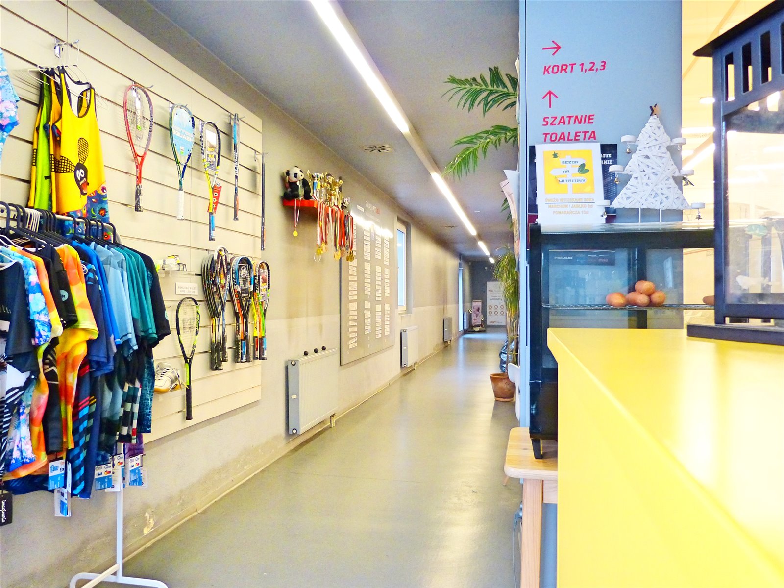- Zaadaptowana pomieszczenie pod wynajem, wraz z podpisaną umową, dodatkowa toaleta oraz pomieszczenie gospodarcze, recepcję wraz z wyposażeniem biurowym i sanitarnym, wyposażenie ciągów komunikacyjnych oraz powierzchnie przed kortami, biuro wraz wyposażeniem sanitarnym oraz umeblowaniem (zaplecze kuchenne).