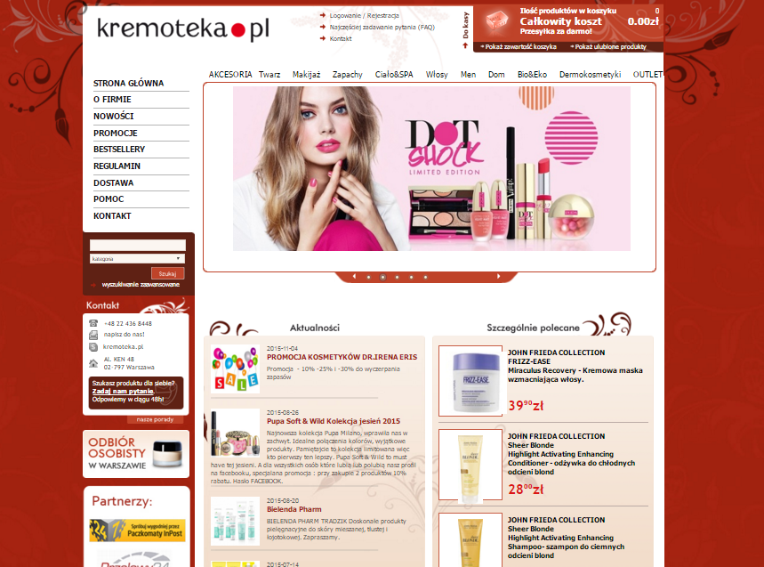 - sklep internetowy kremoteka.pl z długą historią (6 000 zarejestrowanych klientów, 2 000 wprowadzonych produktów z aktualnych ofert producentów) – naturalne wysokie pozycjonowanie wielu marek oraz domena,
