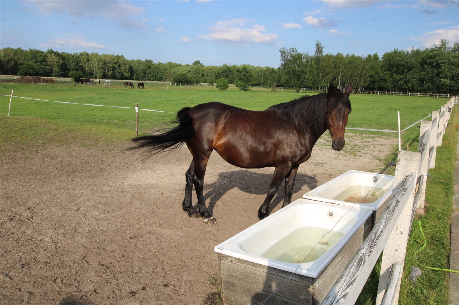 • Pełna infrastruktura jeździecka: stajnia, ujeżdżalnia, padoki i parkury dla koni, możliwość hotelowania koni.