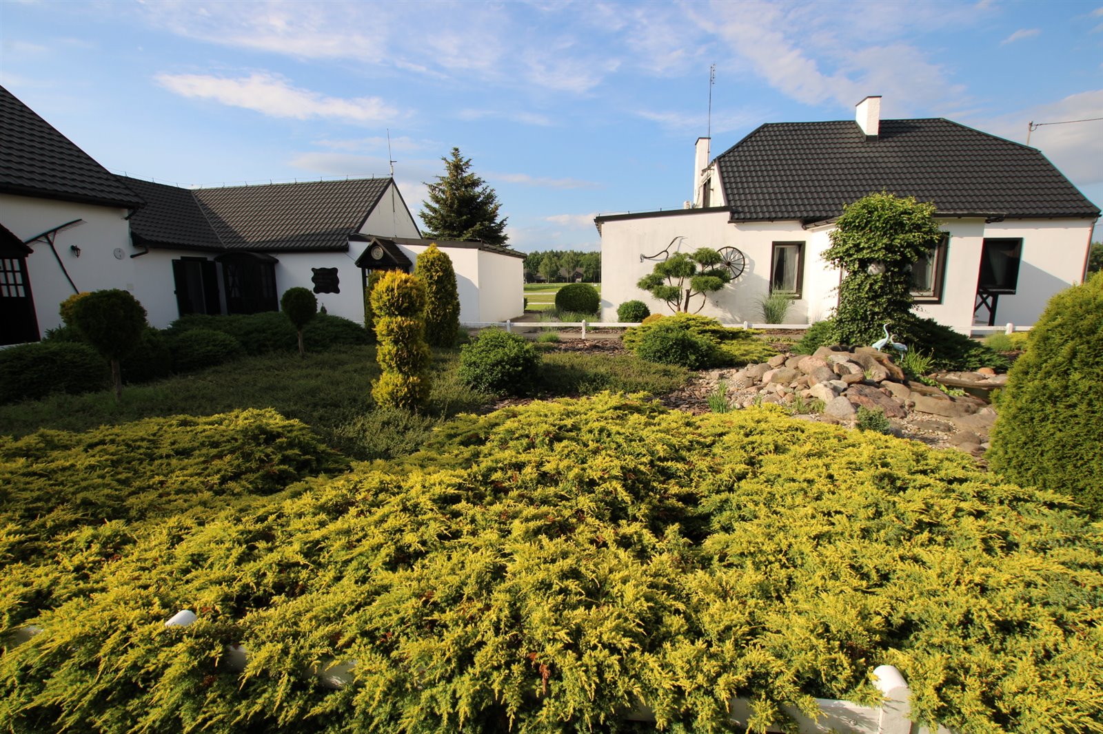 1. Budynek hotelowy (191 m²) – 6 komfortowych apartamentów, w tym jeden dwupoziomowy, mogący pomieścić 16-18 gości.