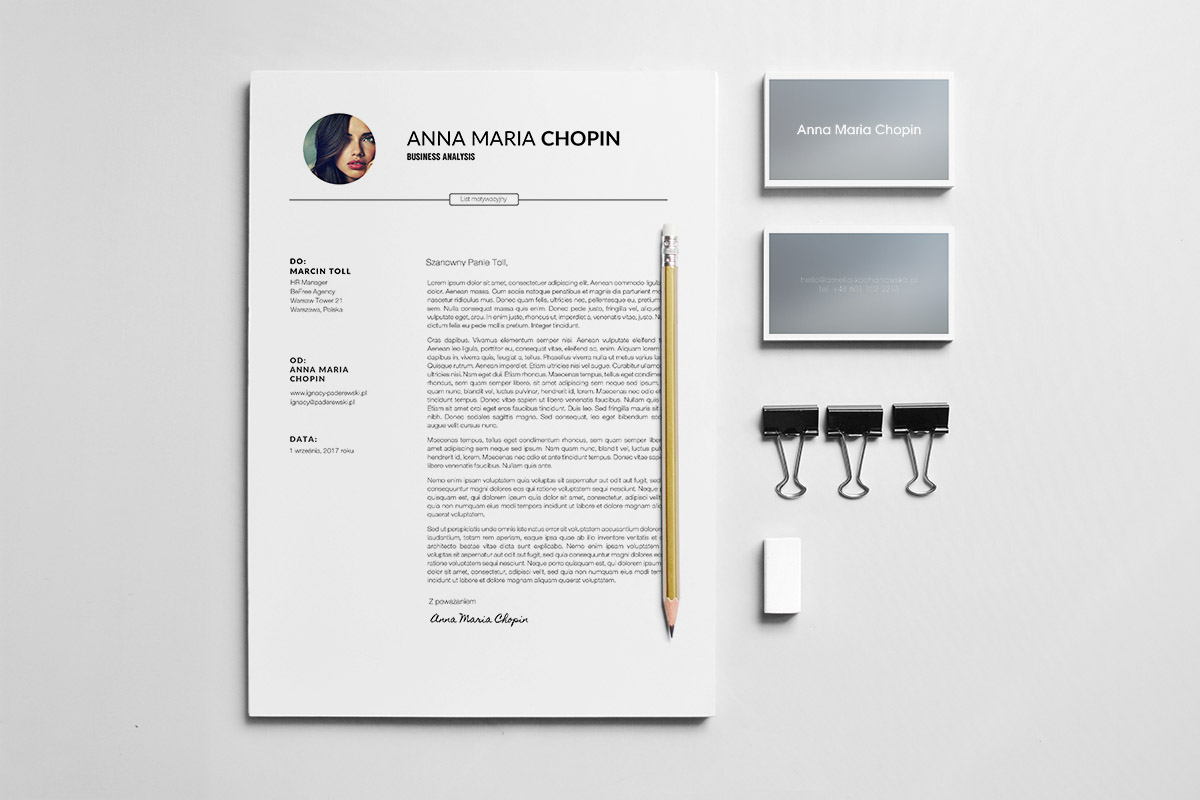 - kontent i licencje graficzne na wzory graficzne CV oraz listów motywacyjnych (pliki źródłowe oraz docelowe MS Word) - uzupełnienie w zależności od ilości stron CV. Proste i intuicyjne.