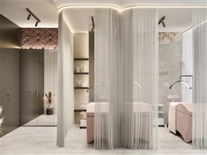 • sala do zabiegów kosmetycznych z 1 łóżkiem i lampą,