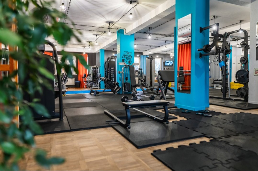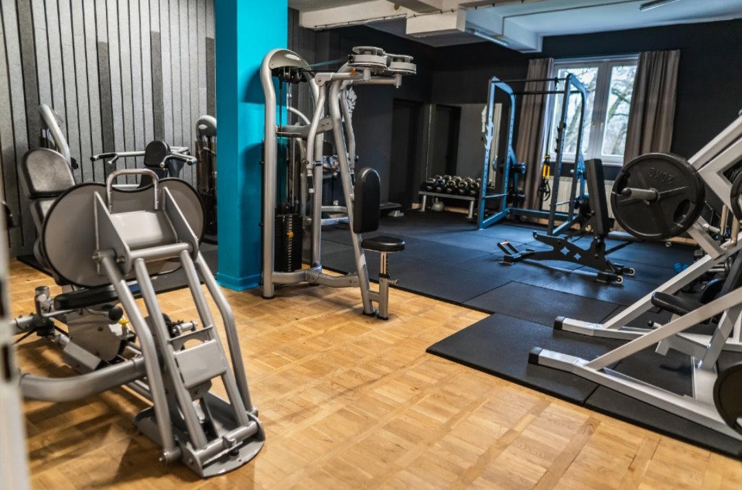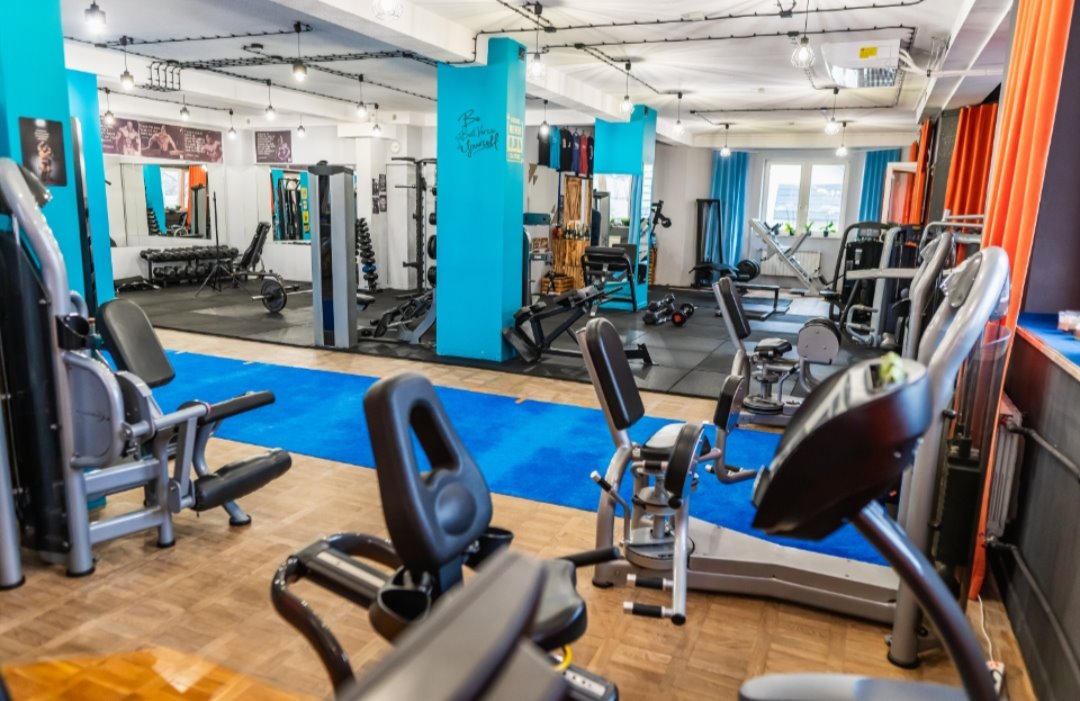 W pełni wyposażone studio (380 m²) – nowoczesny sprzęt do treningu siłowego, funkcjonalnego i cardio, strefa recepcyjna, szatnie, zaplecze socjalne