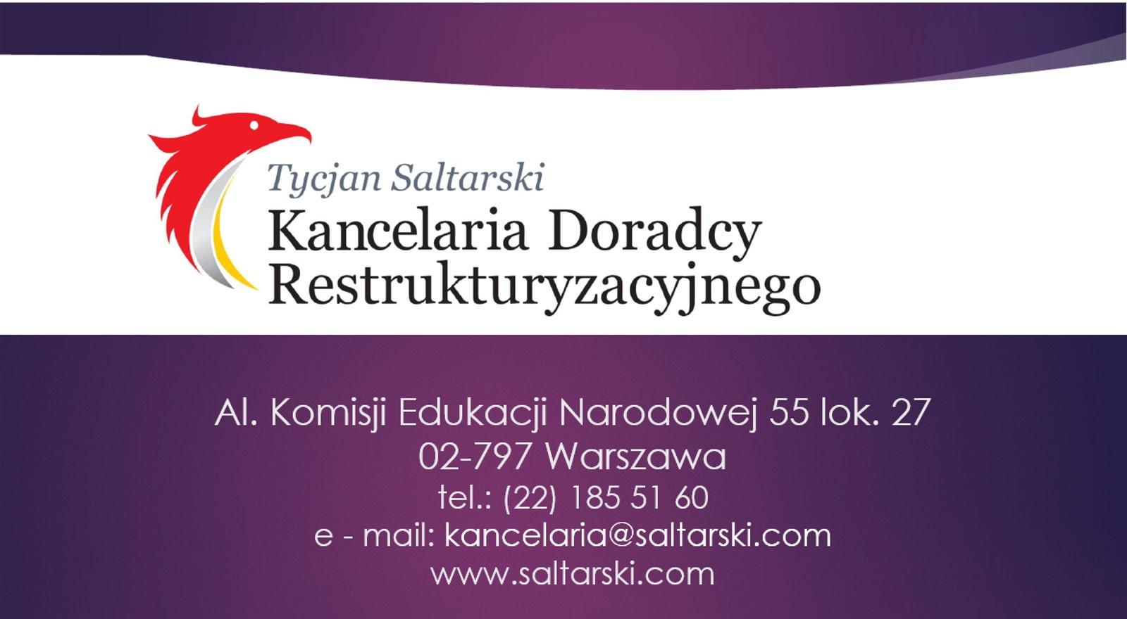Bliższe informacje o przedmiocie sprzedaży są dostępne w Kancelarii Syndyka – Kancelarii Doradcy Restrukturyzacyjnego Tycjana Saltarskiego za pośrednictwem tel.: (22) 185 51 60 oraz e-mail: ************************.