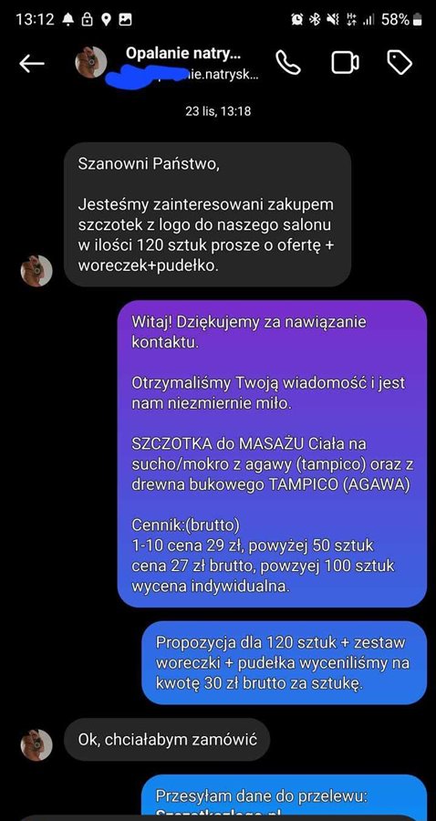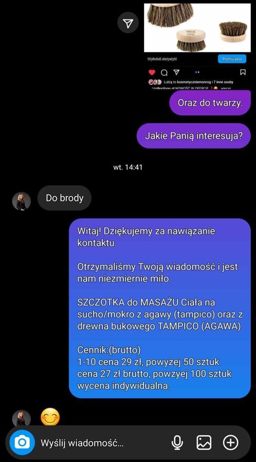 - na Instagramie wiadomości od klientek zainteresowanych ofertą