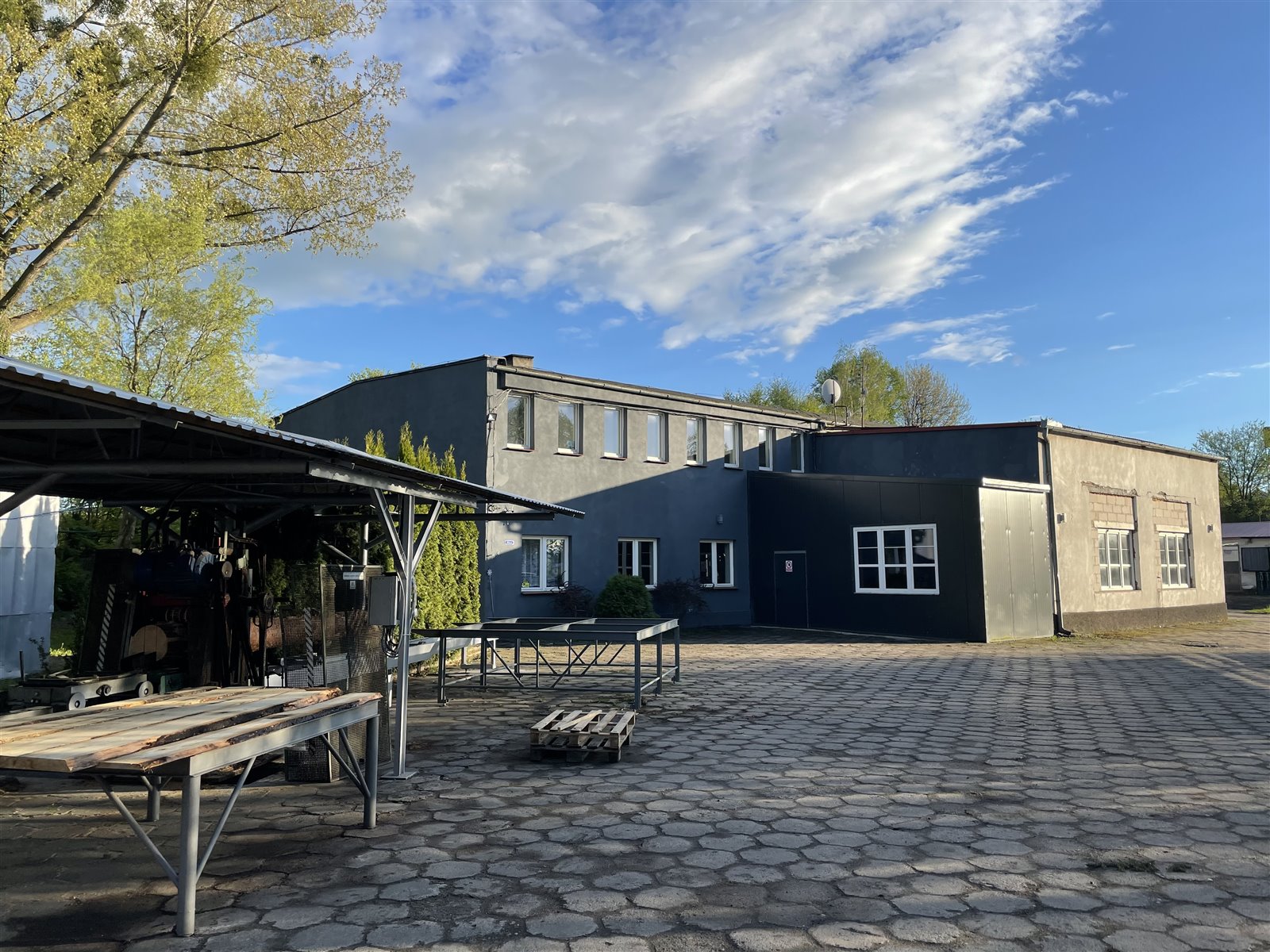 Zakład przystosowany do obróbki litego drewna. Duża stacja trafo, budynek biurowy/mieszkalny. Możliwa sprzedaż ze stajnią.