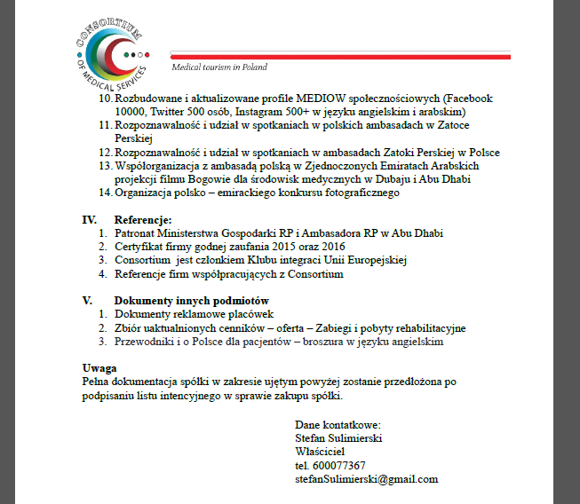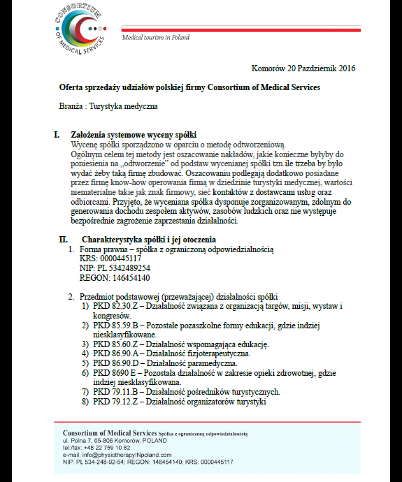 Turystyka medyczna - facylitator - polska firma szuka większościowego udziałowca