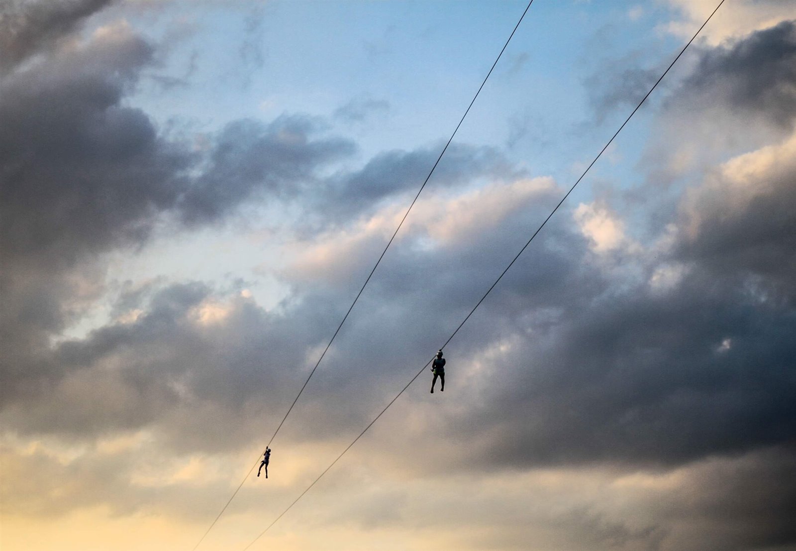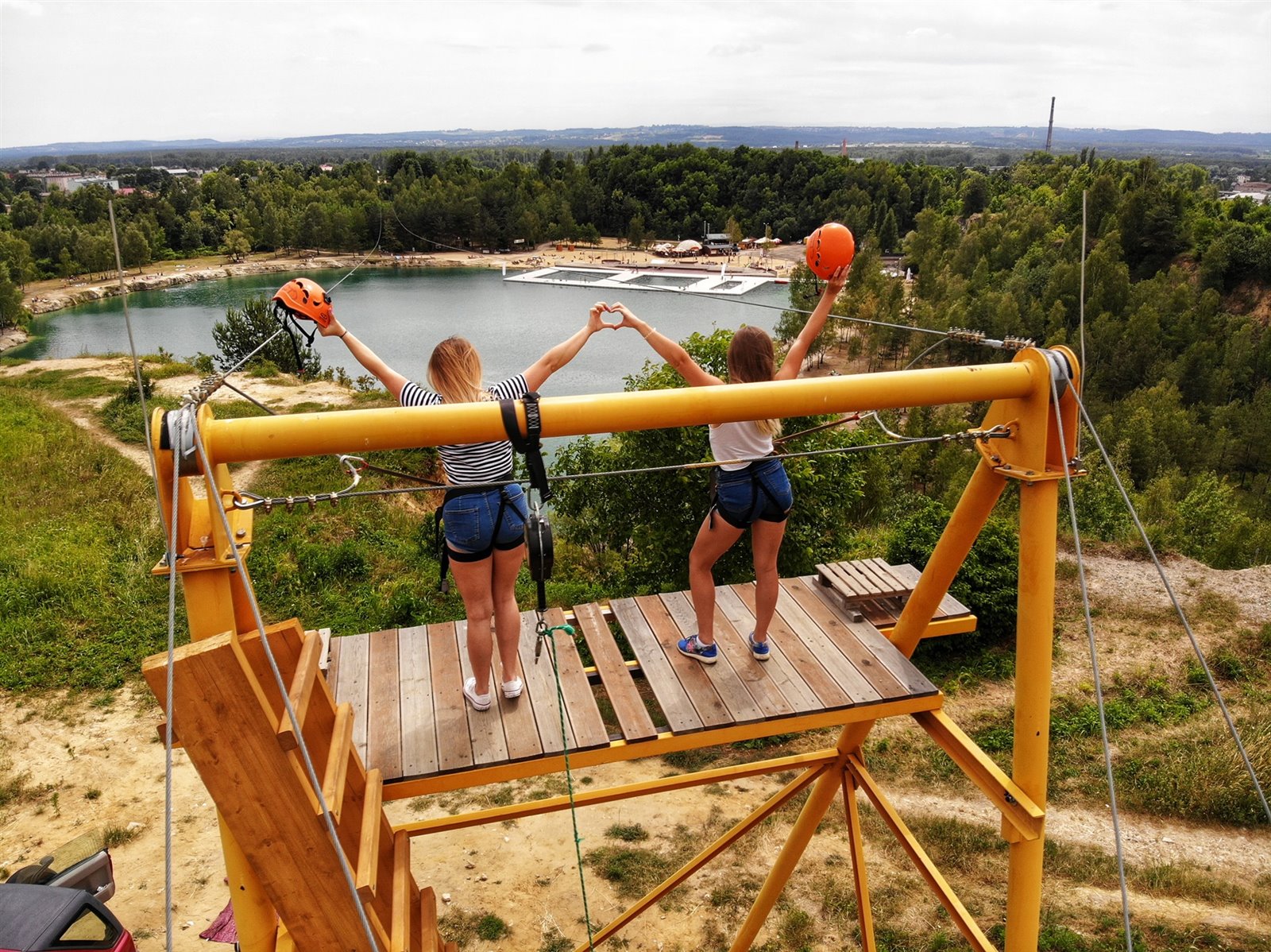 1. Spektakularna podwójna tyrolka o długości 475 metrów zawieszona na wysokości około 30 metrów nad taflą wody.