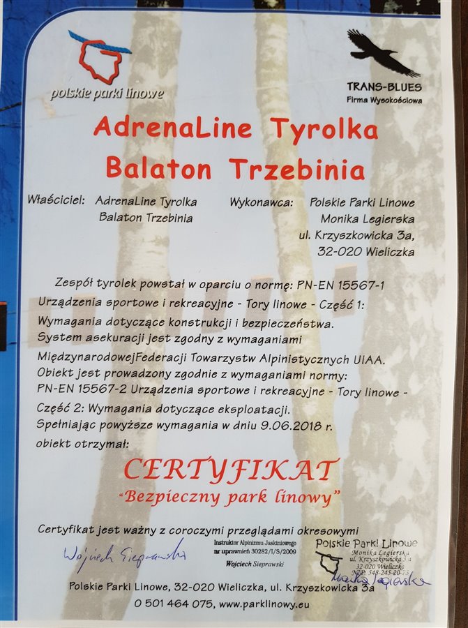 Sprzedamy tyrolkę oraz wodny tor przeszkód nad zalewem Balaton w Trzebini.