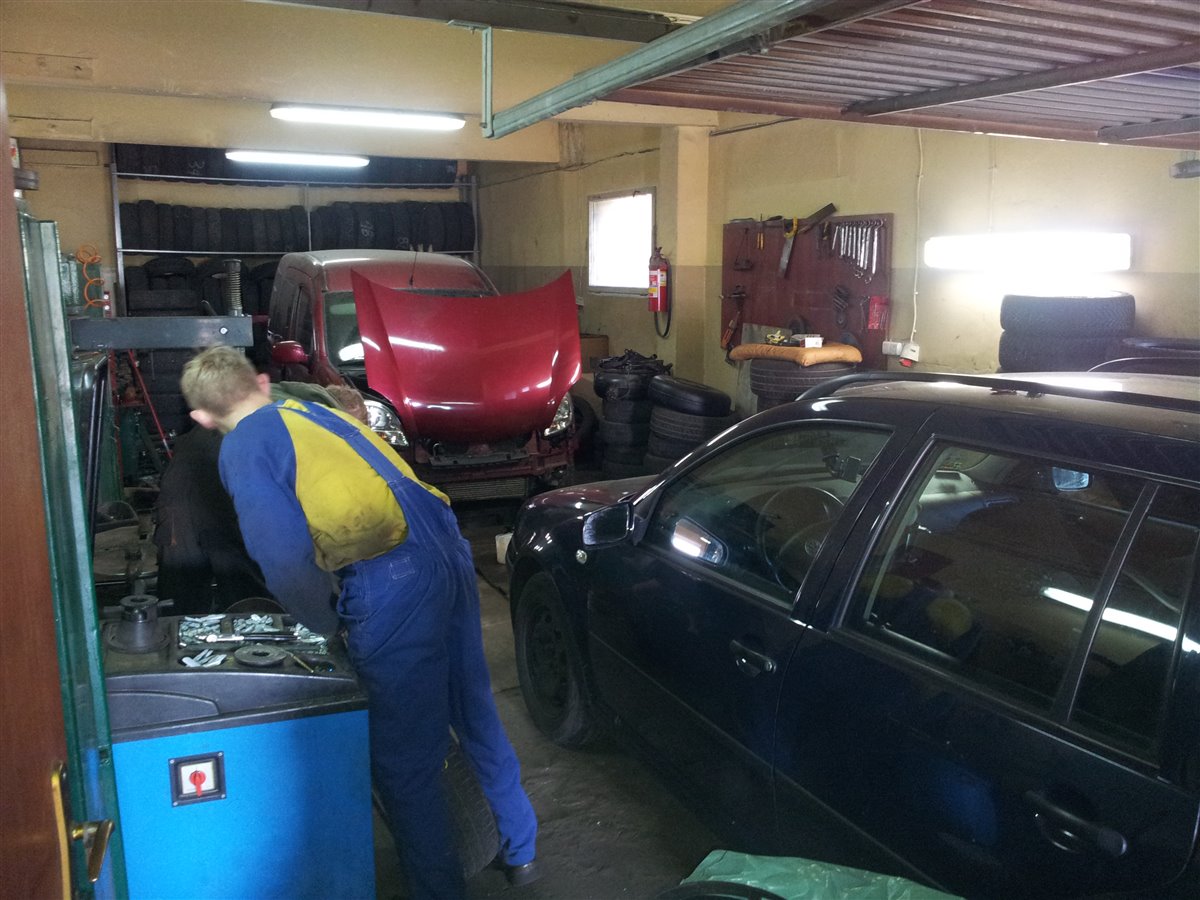 Wyposażony jest w 5 stanowisk naprawy samochodów oraz :