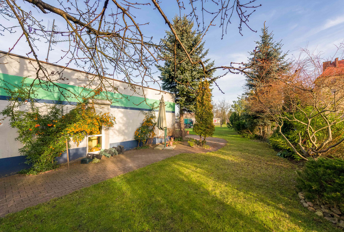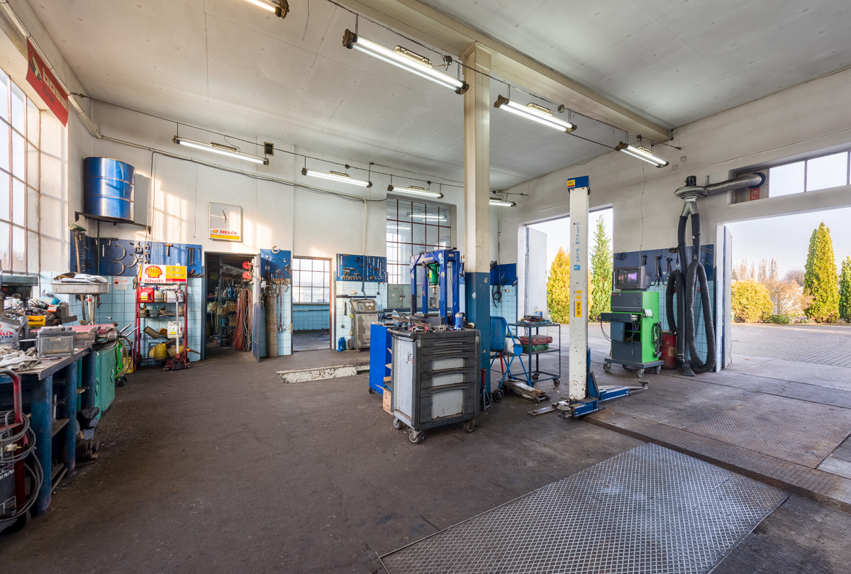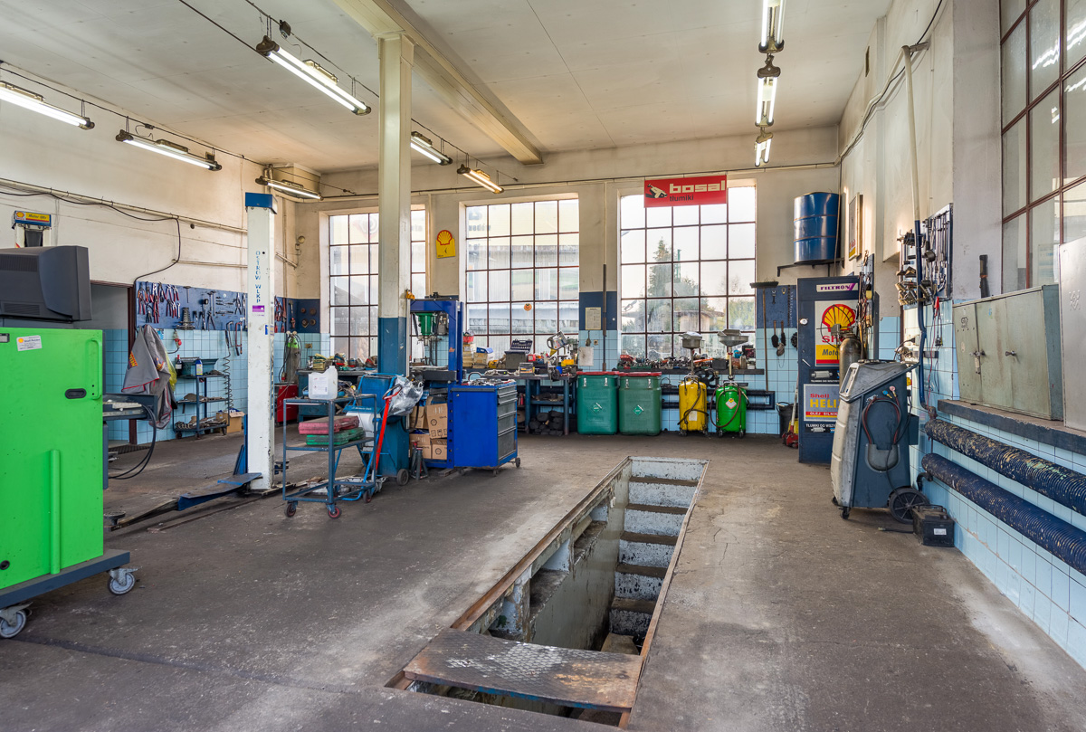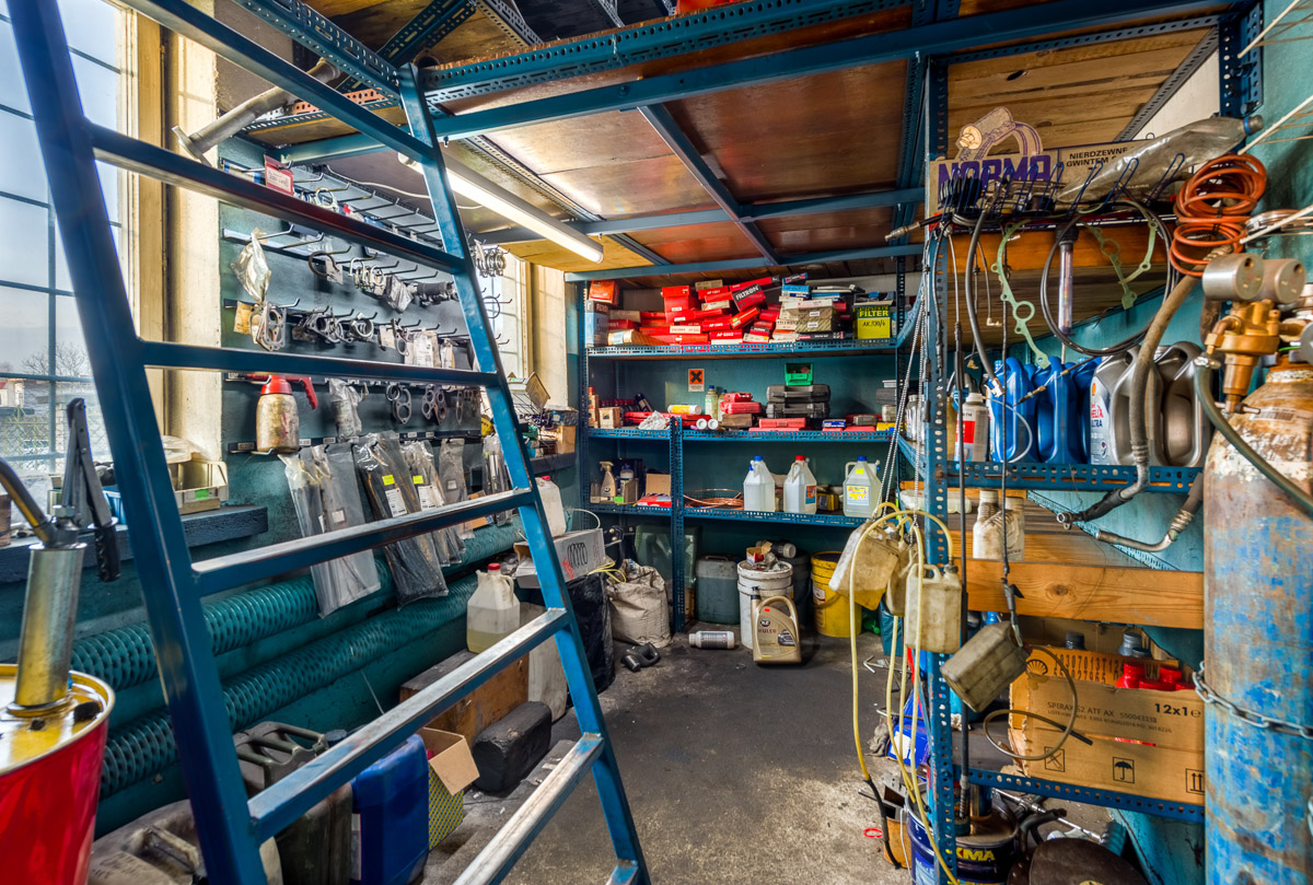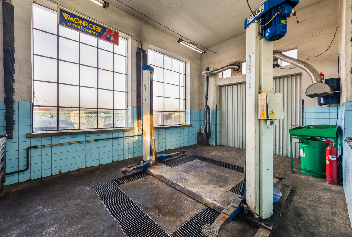Warsztat posiada 3 stanowiska naprawcze. Dwa są wyposażone w podnośniki dwukolumnowe a jedno w kanał. Jedno ze stanowisk posiada odprowadzenie wody. Przed warsztatem plac parkingowy w całości utwardzony i oświetlony. Działka o powierzchni 1200m kw. z terenem zielonym i miejscem do wypoczynku. Wydeptane ścieżki do dostawców części i odbiorców odpadów.