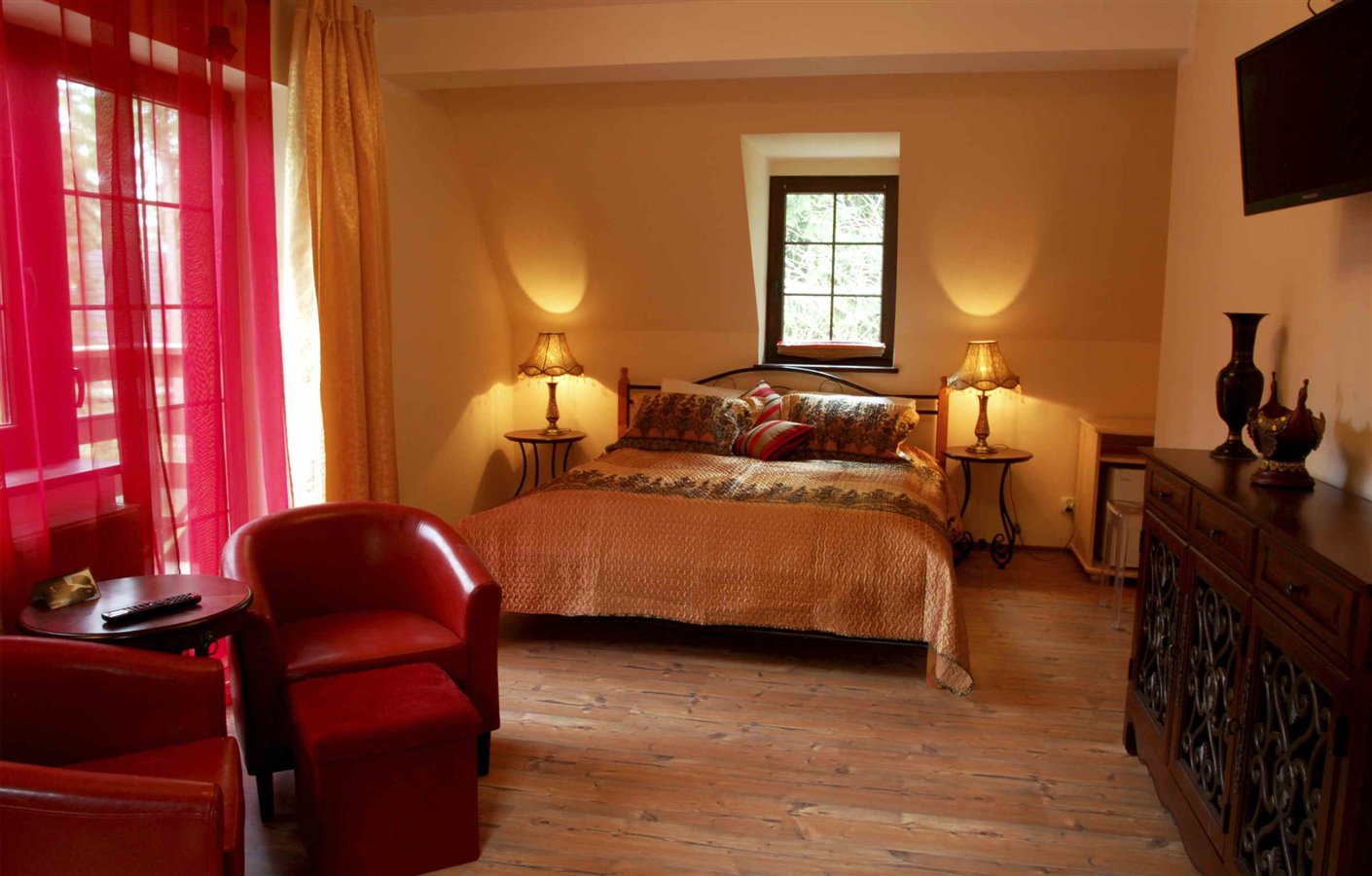 Obiekt w pełni wyposażony – w każdym pokoju znajduje się łazienka z prysznicem, TV LCD, WiFi, czajnik, lodówka, dwuosobowe łóżko z antyalergicznym materacem, pościelą, oraz sofa (może być wykorzystana jak dodatkowe łóżko), stoliki i krzesła.