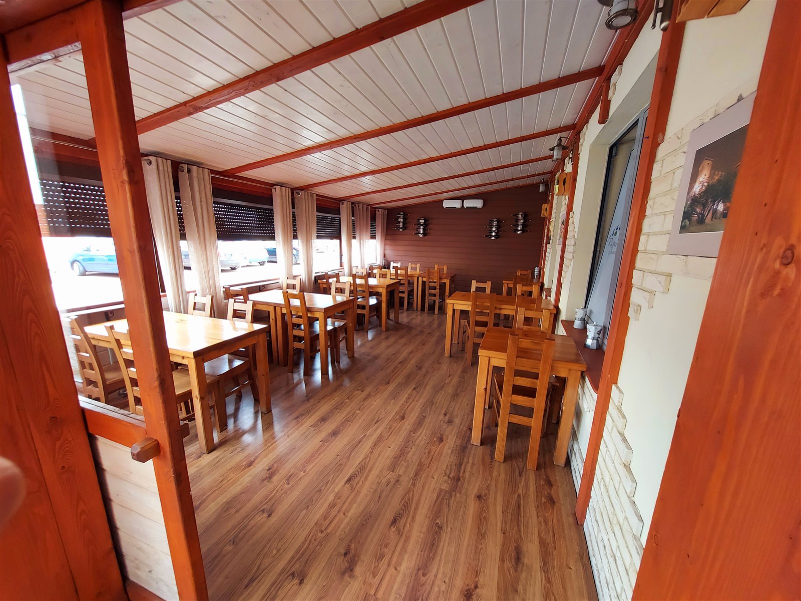 - ok. 200m2 ( 80m2 sala konsumpcyjna 60 miejsc, bar ,kuchnia , zmywak , przebieralnia , toaleta dla personelu i gości ),